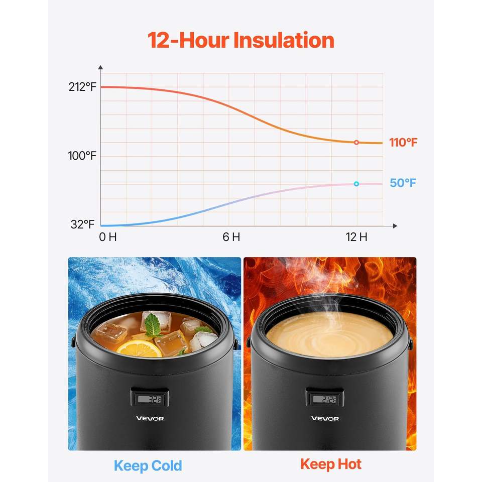 Dispenser Termico per Bevande in Acciaio Inox da 12L/3,2 Galloni con Rubinetto e Display della Temperatura per Bevande Calde