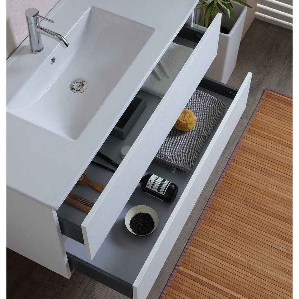 Set Mobile Bagno Minimalista a Due Pezzi con Lavabo in Ceramica Integrato da 120 CM e Specchio Belize a Parete