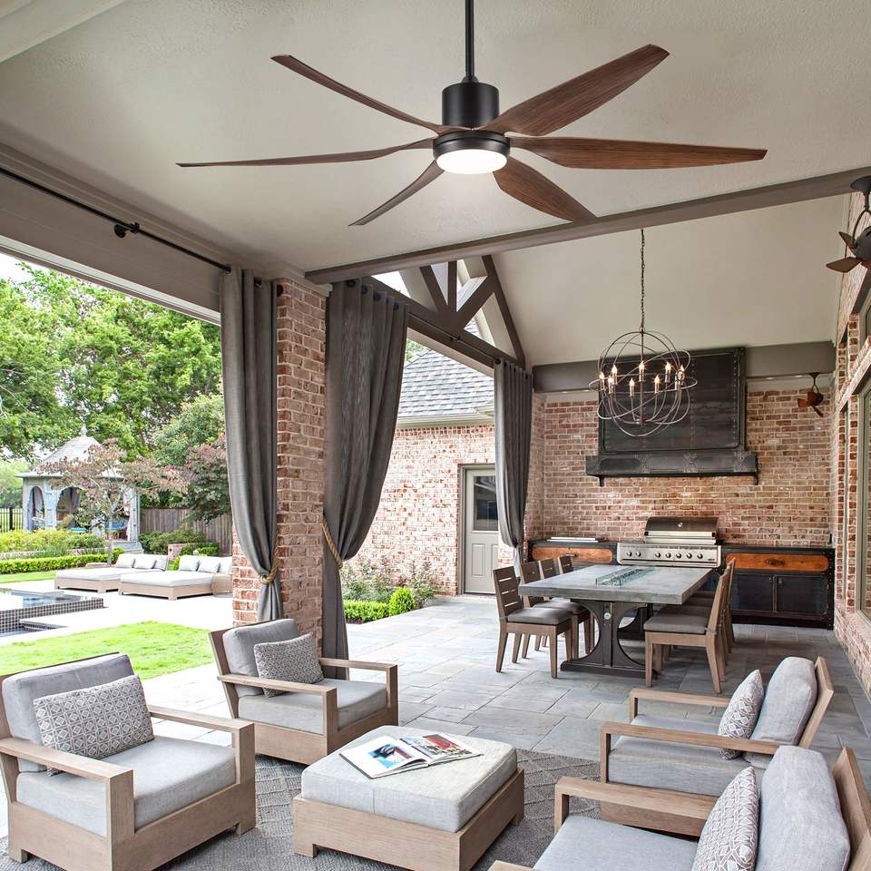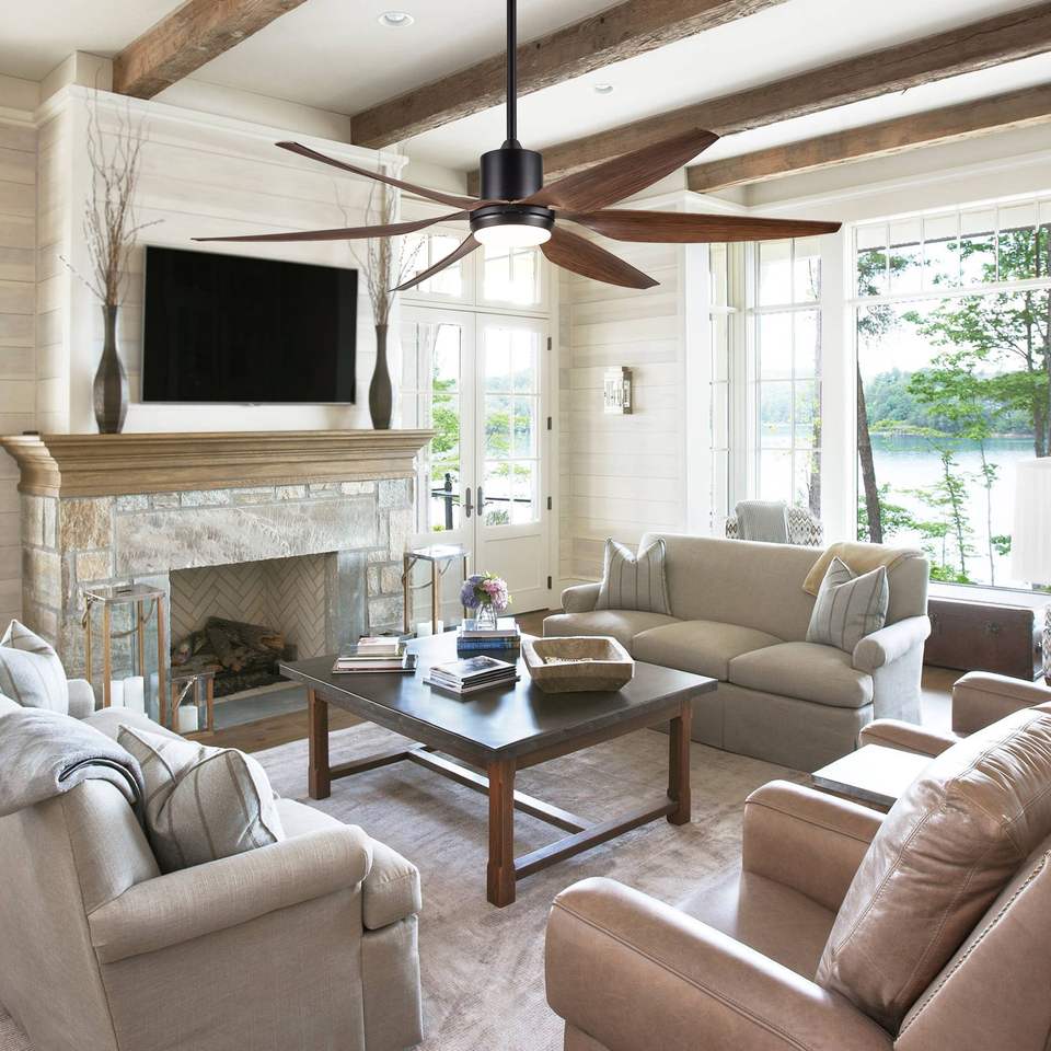 Integrated 66-Inch LED Farmhouse Ceiling Fan with Distressed Wood Blades Smart Indoor Design Remote Control Brown Color
