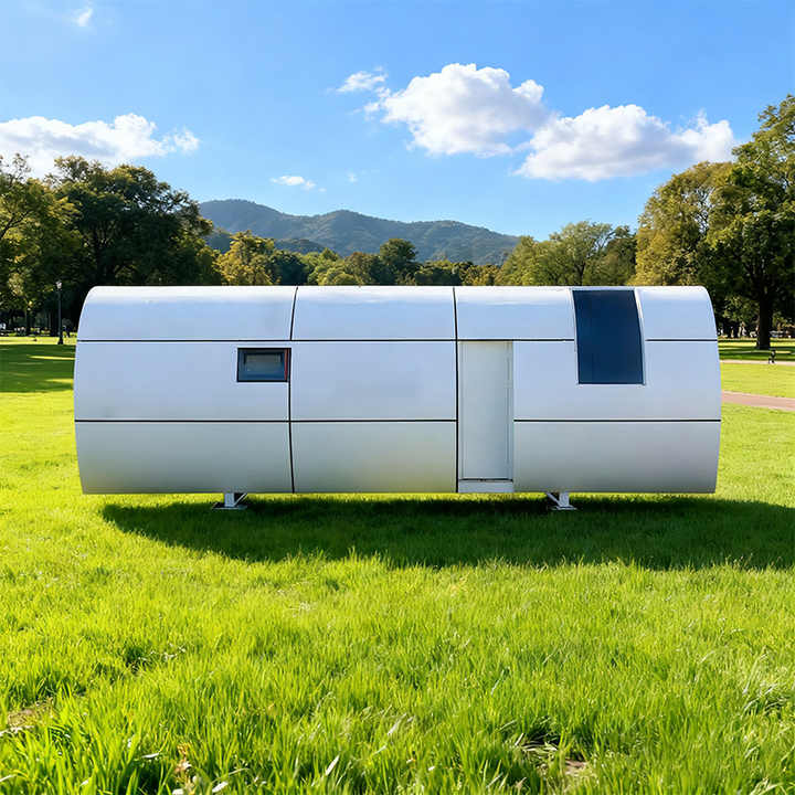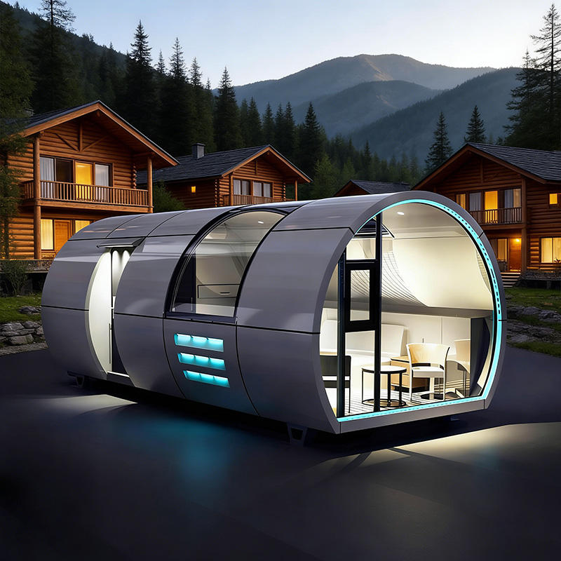 Casa Capsula Mobile Integrata con Balcone, Design Rustico, Struttura in Acciaio per Hotel o Bagno