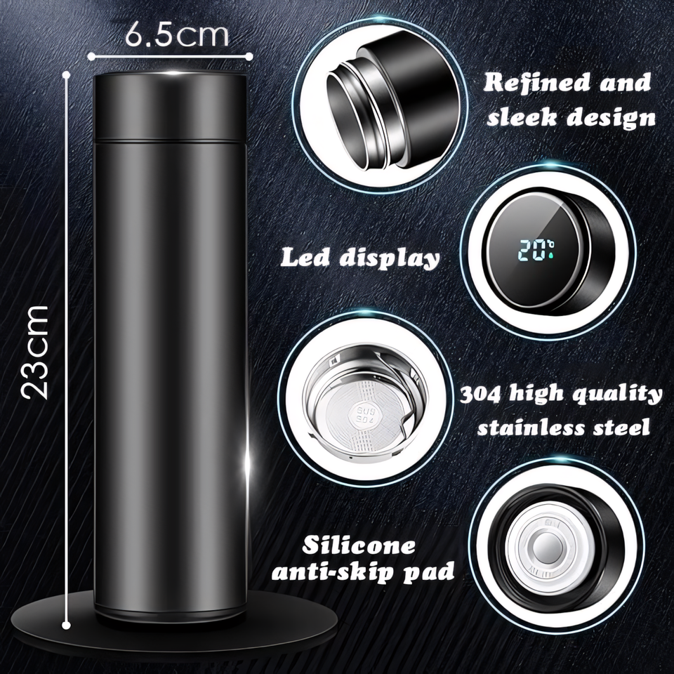 Portable, Business Services, Eco-Friendly, Large Capacity, Temperature Display, Stocked, Washable, Anti-Slip, Smart, Leak-Proof, BPA Free, double wall vacuum insulated, led temperature display, Thermal Insulation, Wide Mouth, spill proof, Narrow Mouth, Silicone sleeve, rubber bottom