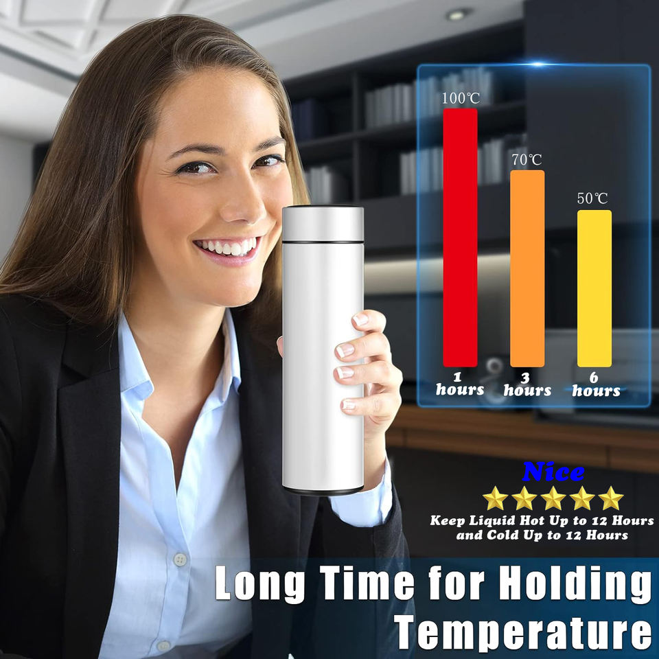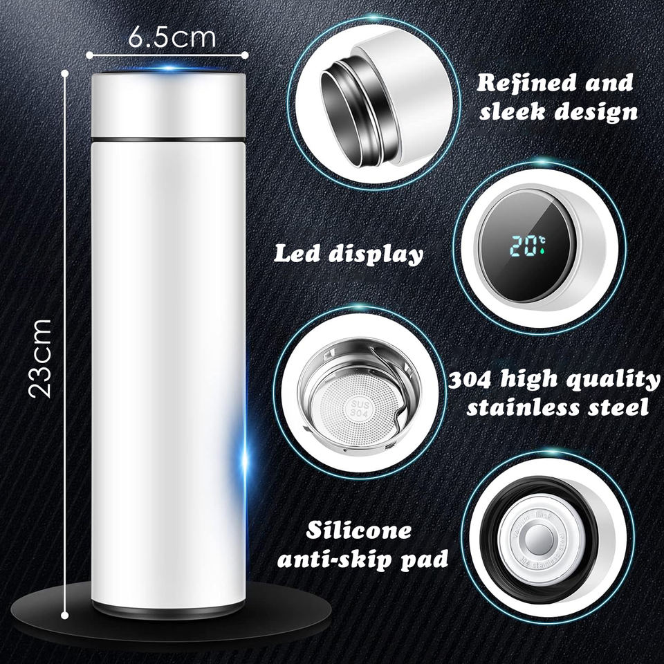 Borraccia Termica Intelligente da 500 ml in Acciaio Inox con Display LED della Temperatura e Infusore per il Tè