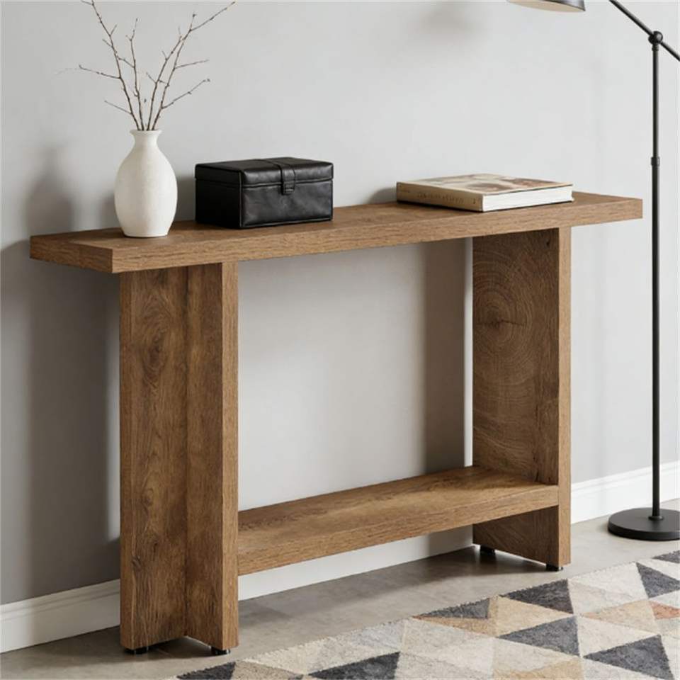 Tavolo Consolle Intelligente a Doppio Strato, Tavolo da Divano Stile Rustico, Tavolo per Corridoio e Ingresso