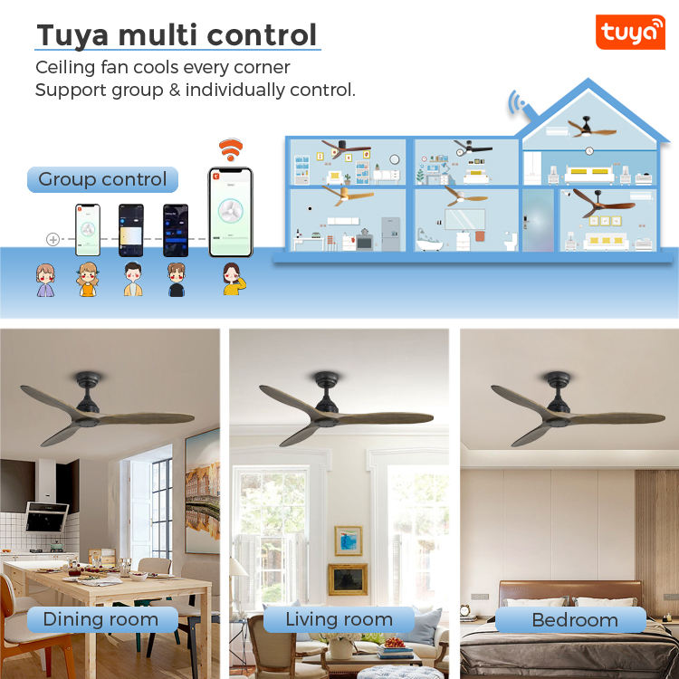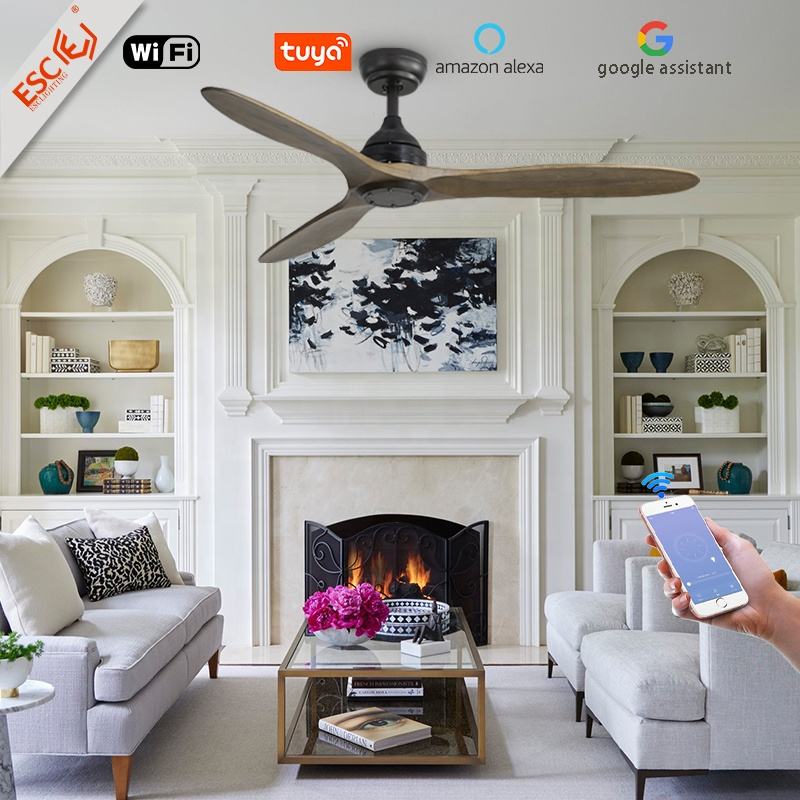 Ventilatore intelligente silenzioso a soffitto in legno di tacchino con telecomando wifi tuya ventilatore a soffitto da soggiorno