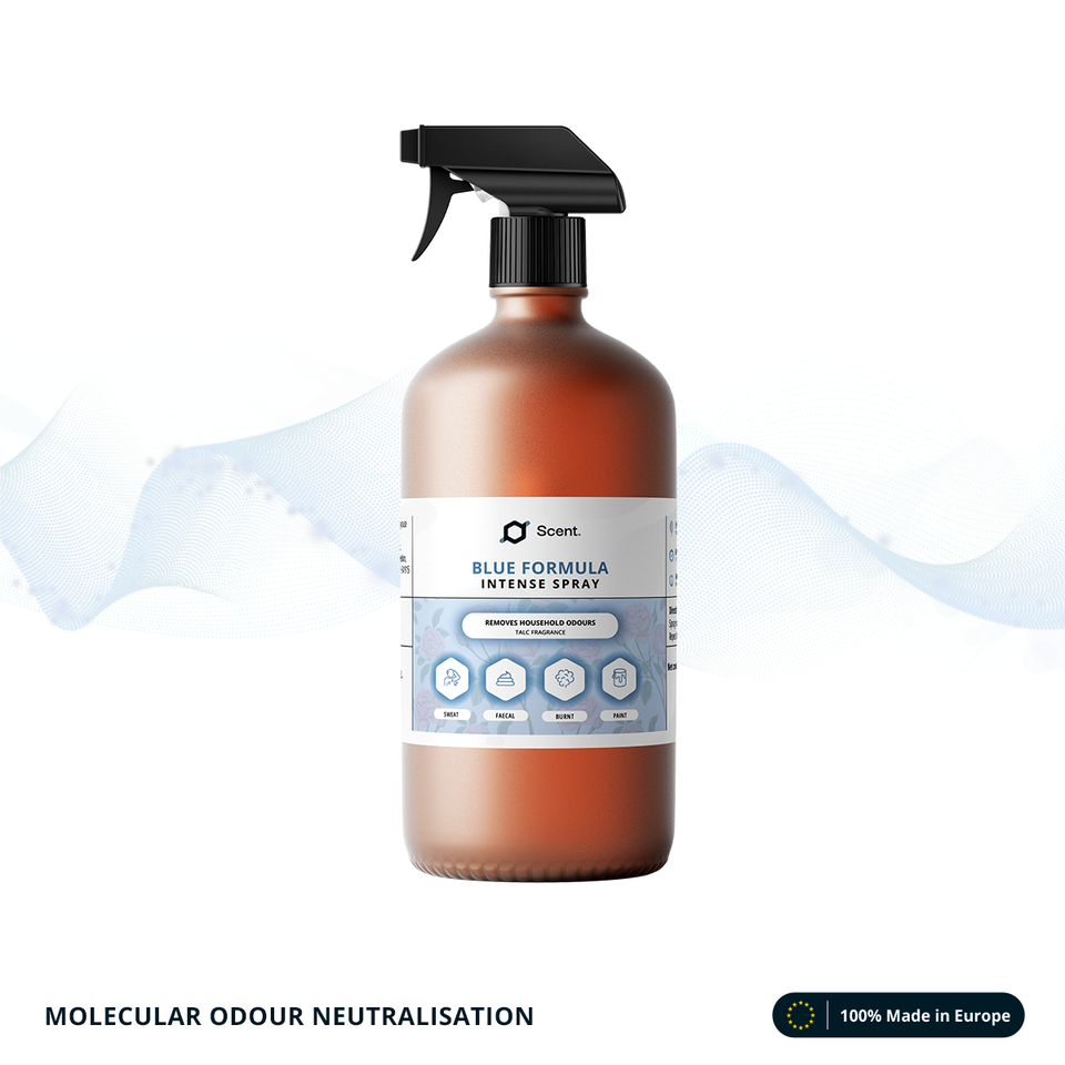 Neutralizzatore di Odori Spray Intenso Formula Blu: Odori di Sudore, Feci, Fumo e Solventi - Bottiglia da 1L - Pronto all'Uso
