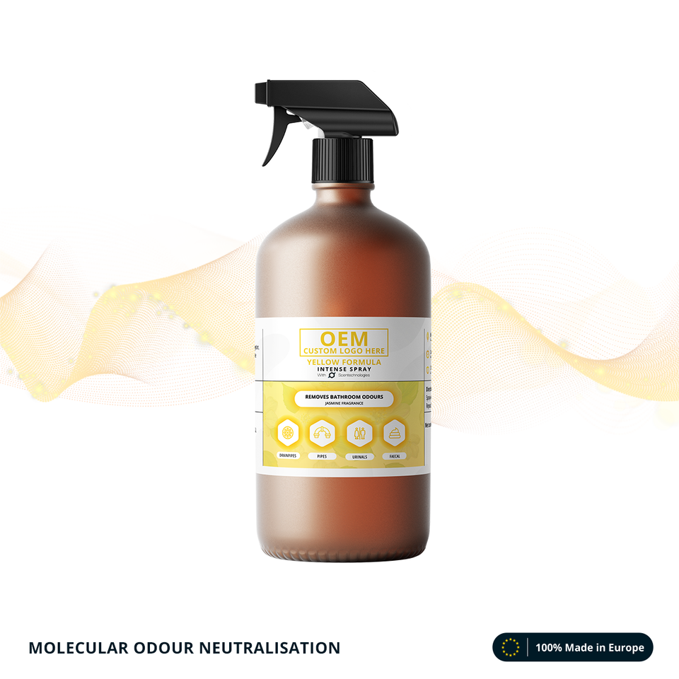 Neutralizzatore di Odori Spray Intenso Formula Gialla: per Scarichi, Fognature, Odori di Urina e Fecali - Bottiglia da 1L - OEM / Etichetta Privata