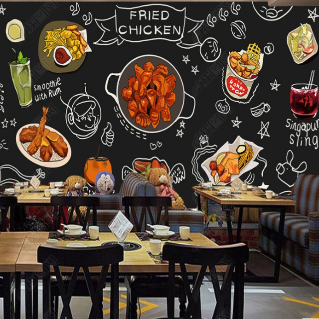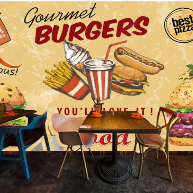 Interior Design Creative Gourmet Cartoon Pizza Wall Mural Fast Food Restaurant Background 3d Wallpaper