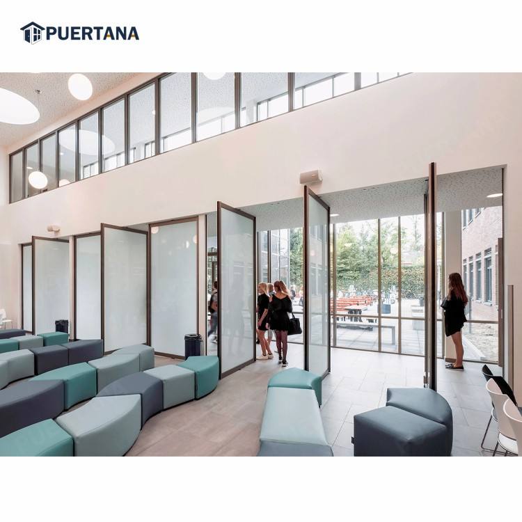 Linea principale interna porta girevole a più pannelli in vetro con perno porte interne in alluminio con perno centrale in alluminio