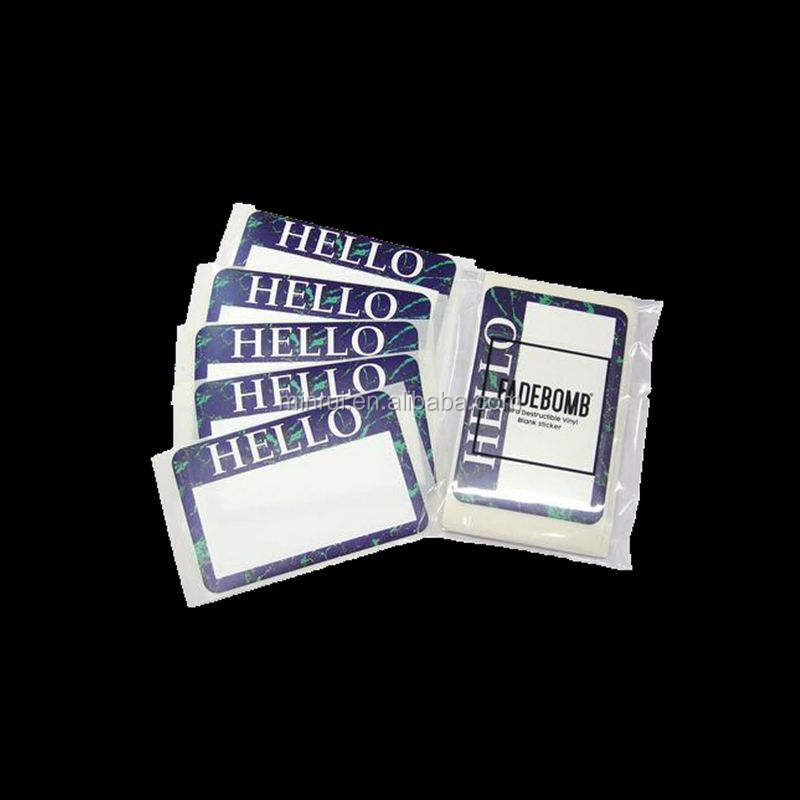 Adesivi in vinile con guscio d'uovo bianco classico generale internazionale, con guscio d'uovo in bianco nero con stampa "ciao, il mio nome è"