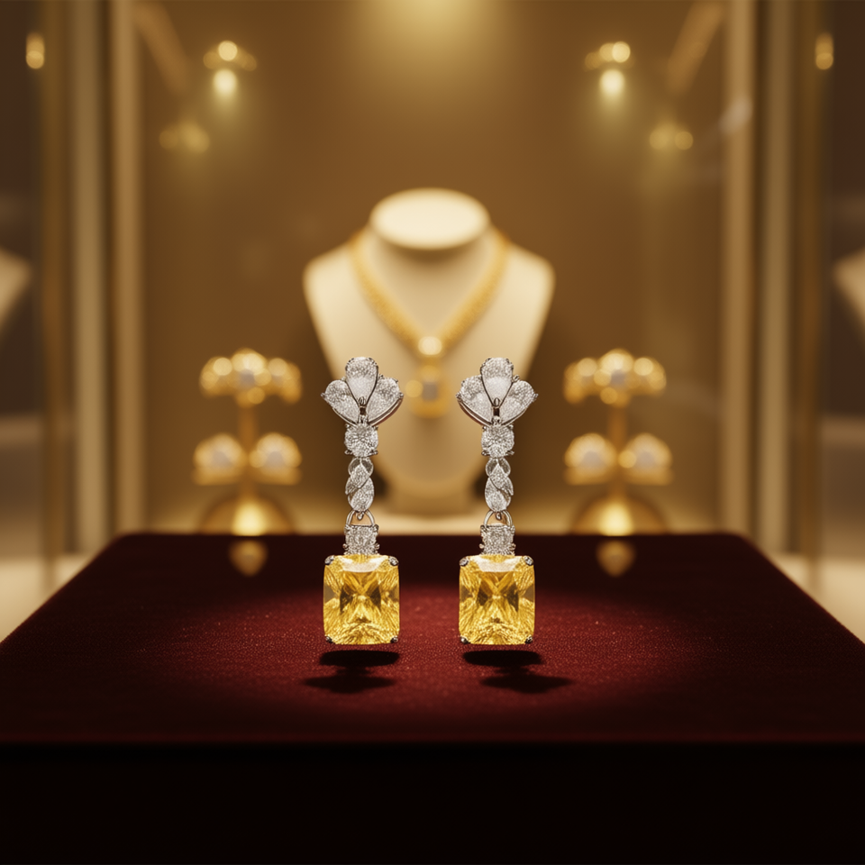 International Station Diamond Earrings Yellow Fancy Emerald Cut White Gold GIA Certified Wedding Jewelry Women's Classic Style