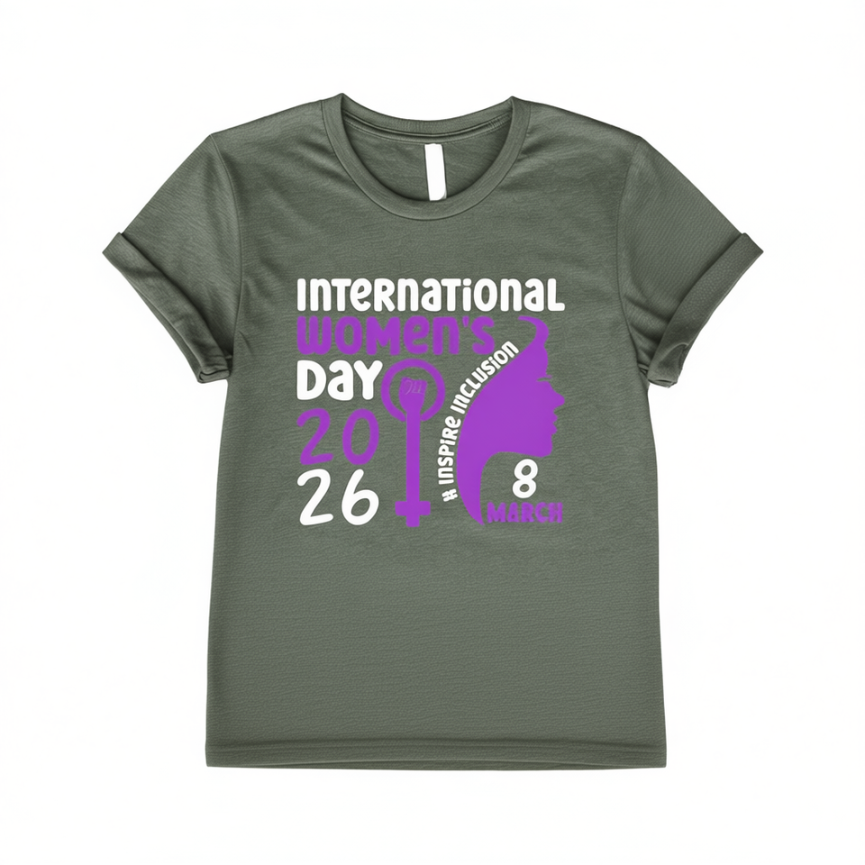 T-shirt per la Giornata Internazionale della Donna 2026 da donna, stampa viola, casual, girocollo, manica corta, 100% cotone jersey, vestibilità aderente