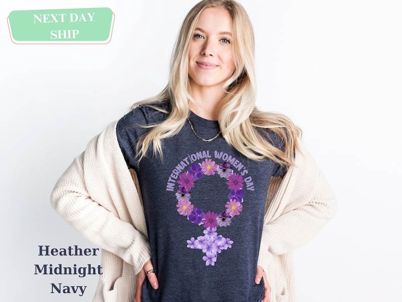International Women's Day Floral Tee Women Long Sleeve Cotton Crew Neck Casual Spring Summer Print Jersey Shirt