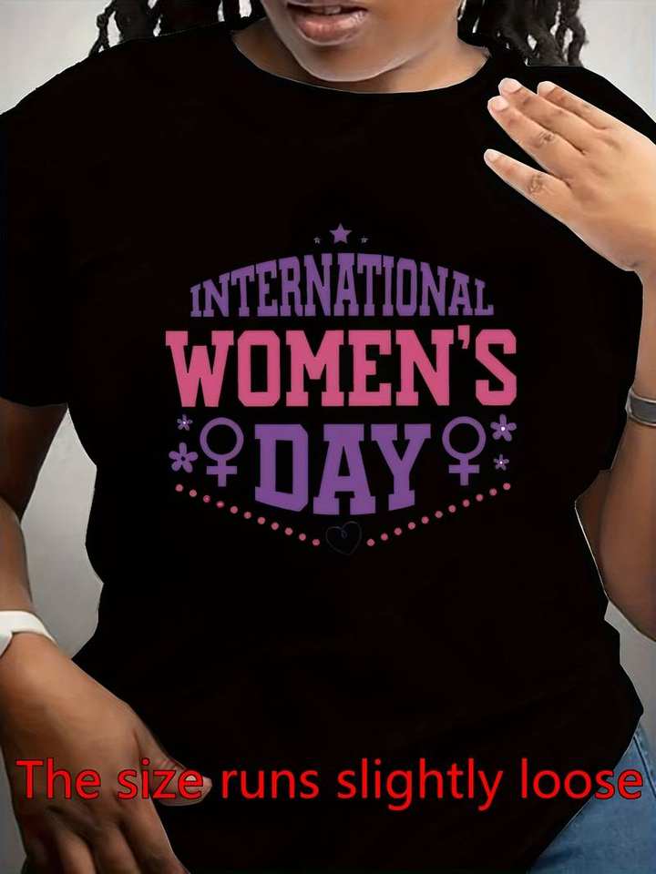 International Women's Day T-Shirt For Women Short Sleeve Crew Neck Regular Fit Casual Letter Print Jersey Fabric Top