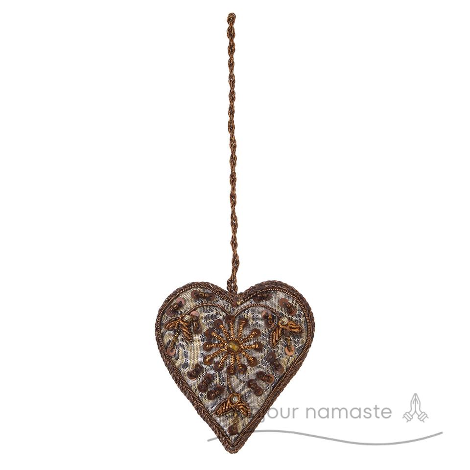 Ricamato in oro rustico cuore ornamento romantico decorazione vacanza all'ingrosso Bonjour Namaste eco-friendly forma personalizzata