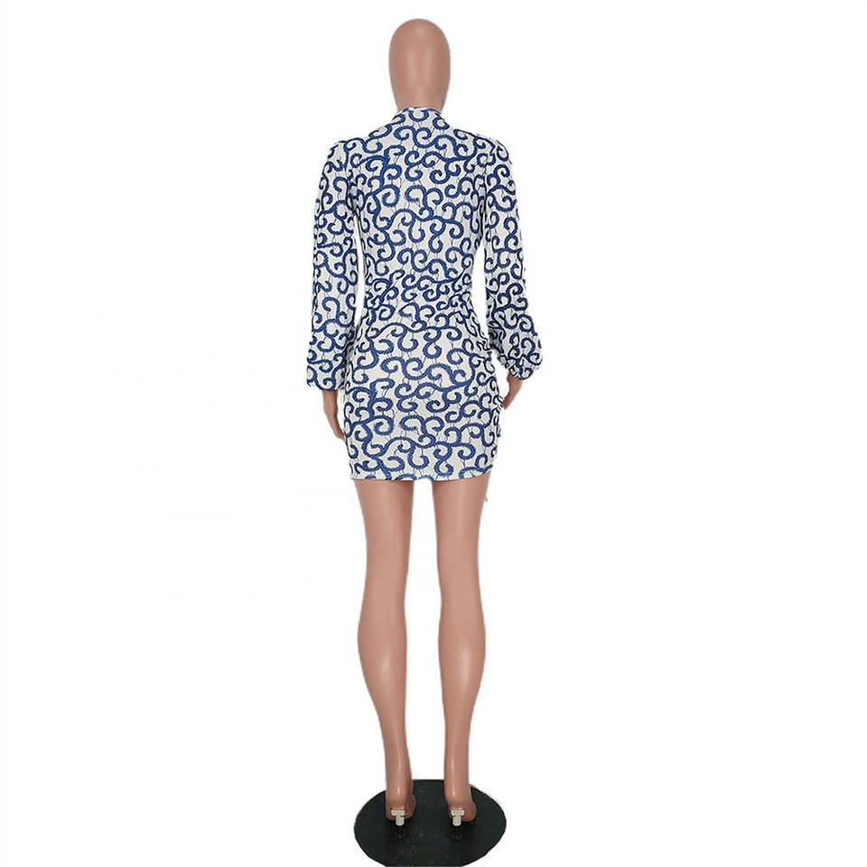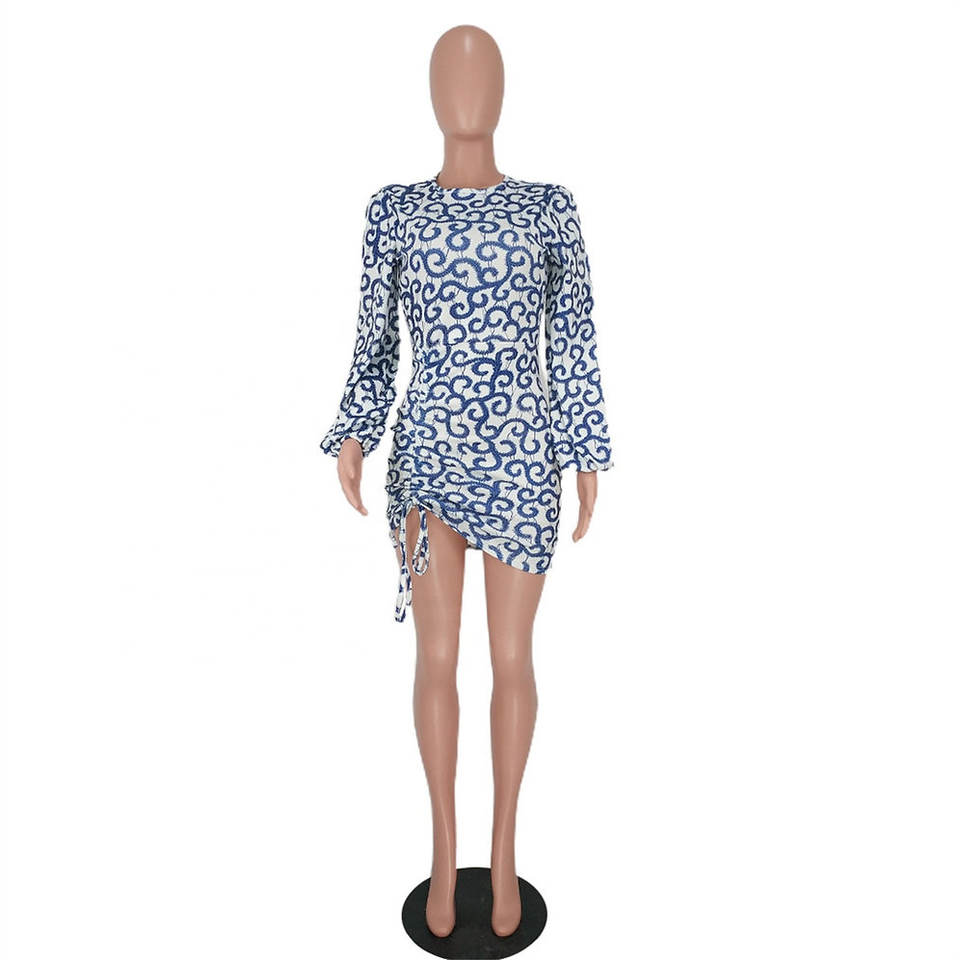 Abito da donna collo a U in cotone tessuto petto e vita aderente abito lungo semplice e fantasia