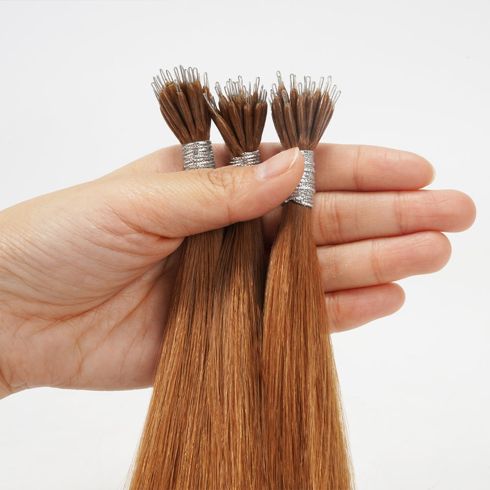Extension per capelli invisibili con anello nano, doppia trama, colore nocciola chiaro, 100% capelli Remy di prima qualità, senza perdita di capelli