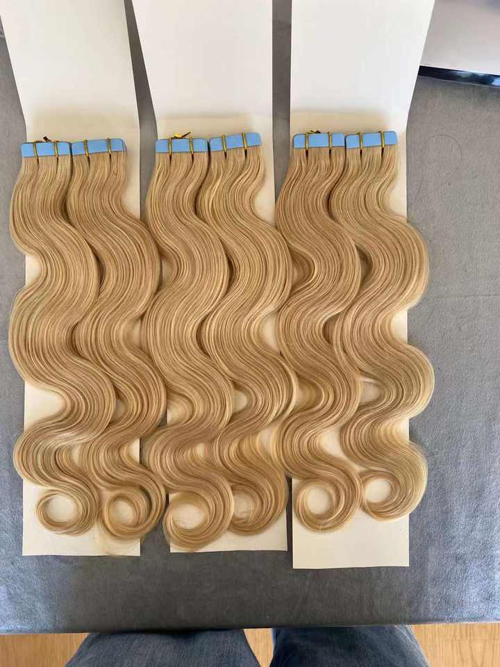 Nastro invisibile in nastro biadesivo all'ingrosso indiano con una striscia senza tracce di estensioni Humain colorate umane nell'estensione dei capelli