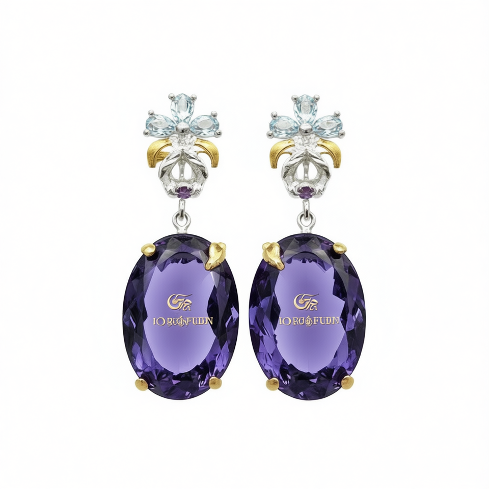 Iorofudn Amethyst Drop Earrings 925 Silver 18K Gold Plated Flower Design Luxury Women's Party Jewelry