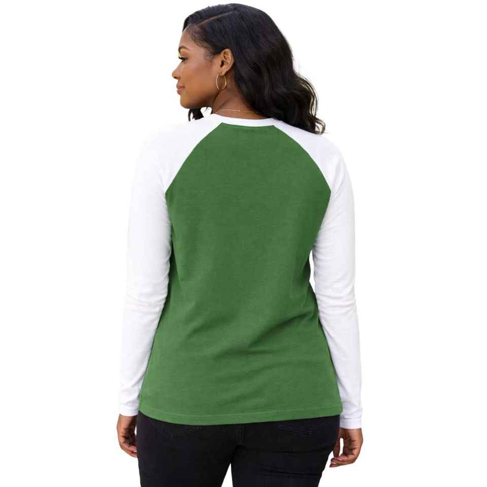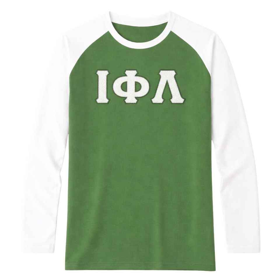 Iota Phi Lambda Sorority Emerald Green Raglan Long Sleeve Shirt White Sleeves Greek Letter Apparel Womens Casual Top Premium Pro