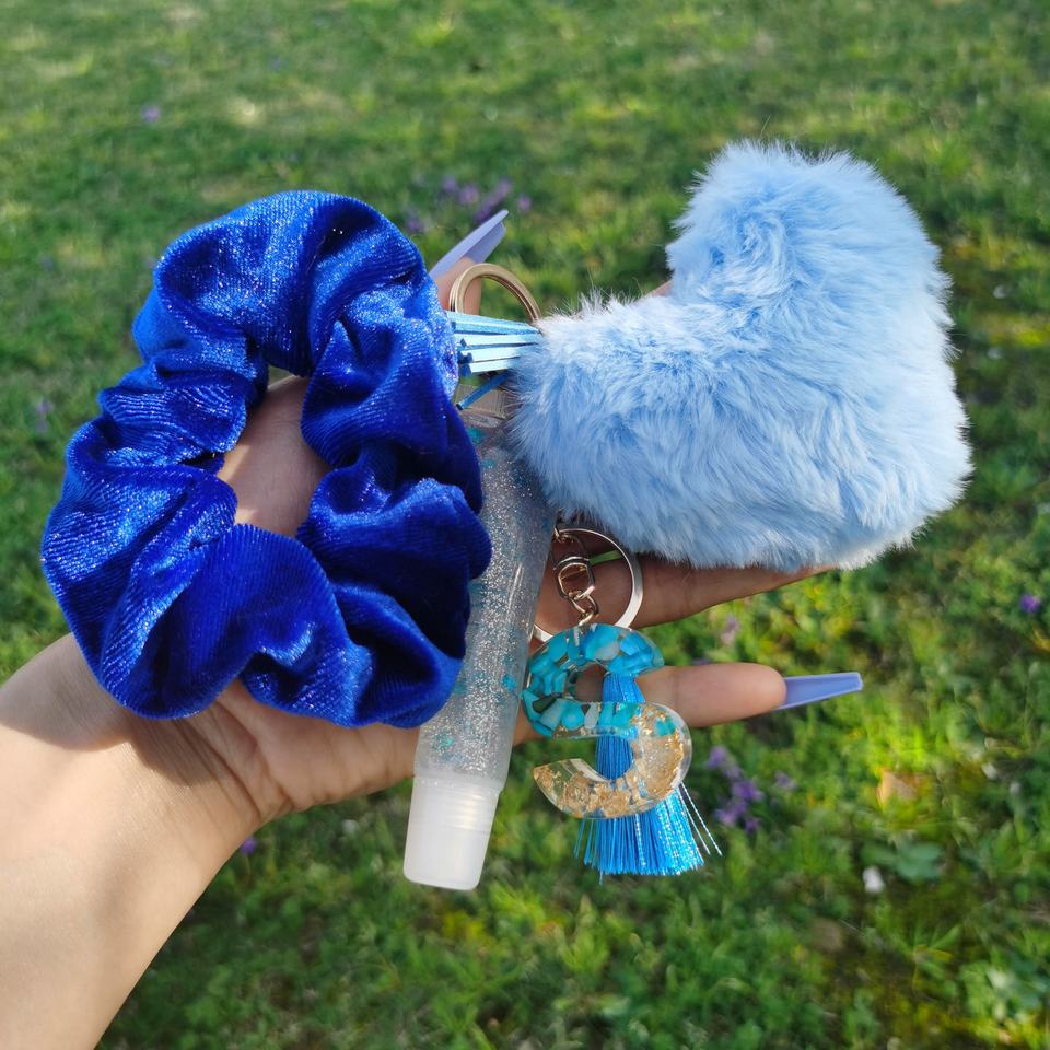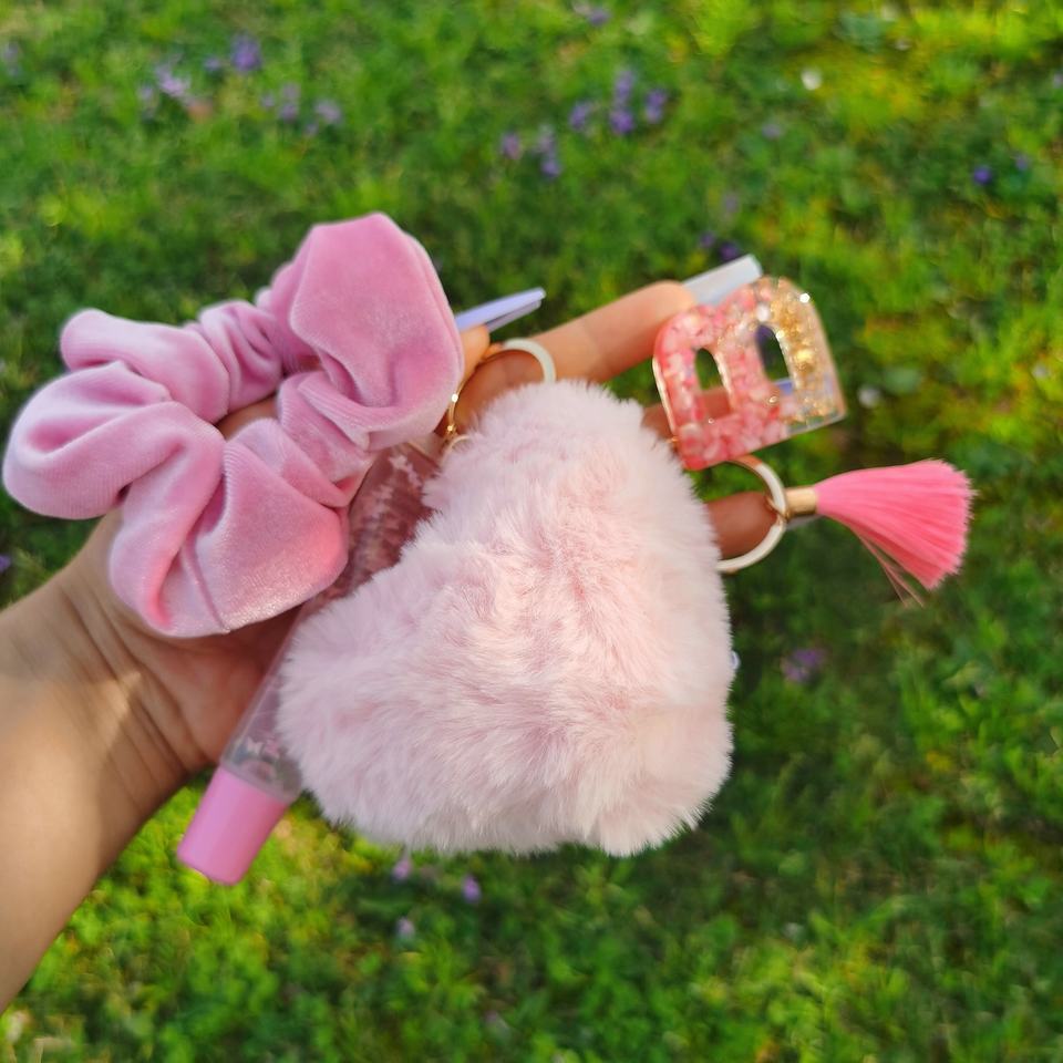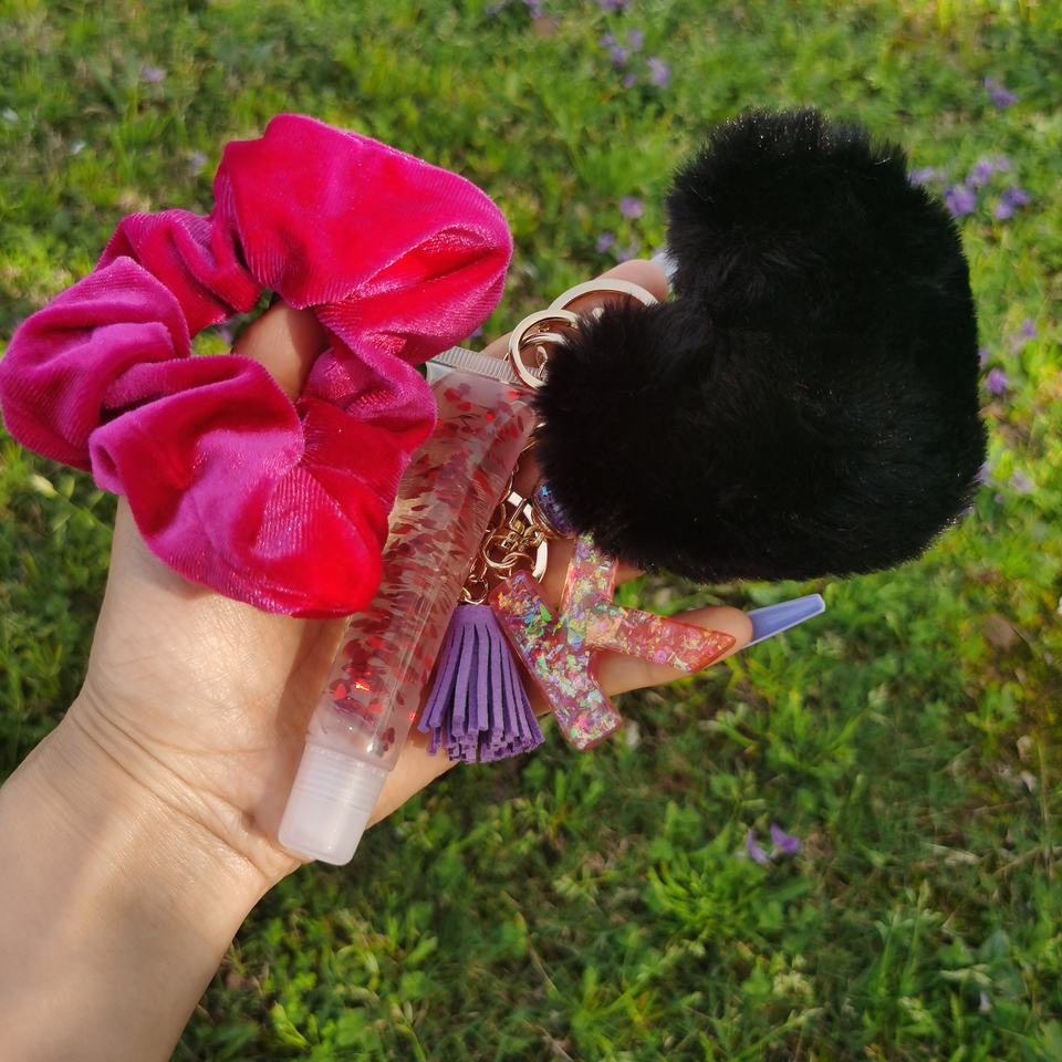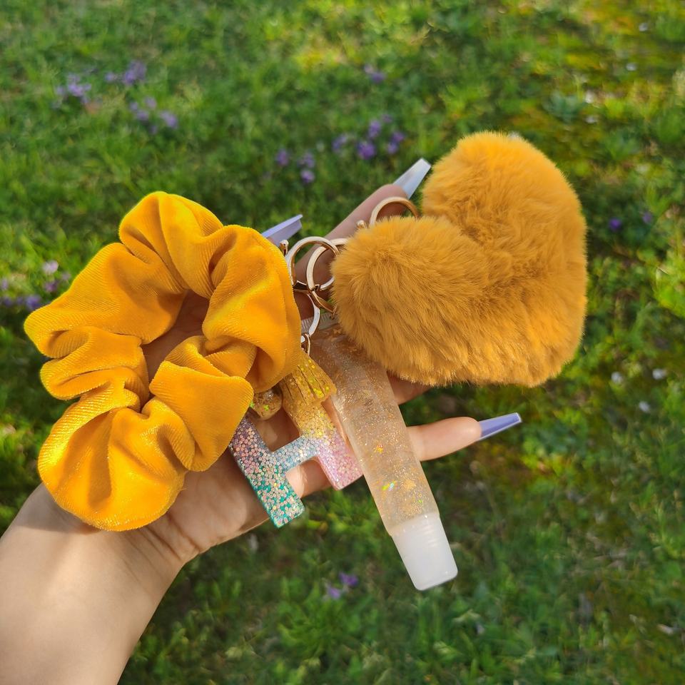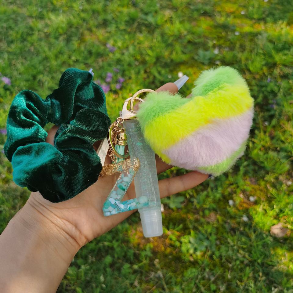 Hair ring, POMPOM Kechain, Letter Keychain, Lipgloss