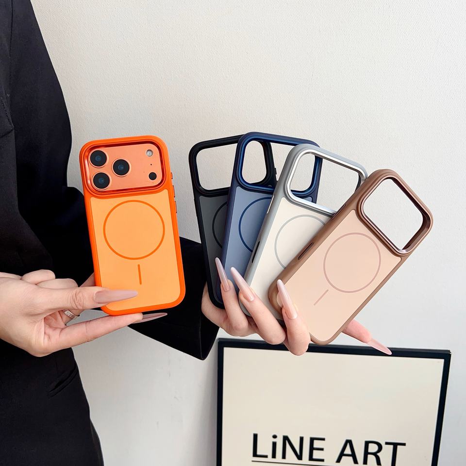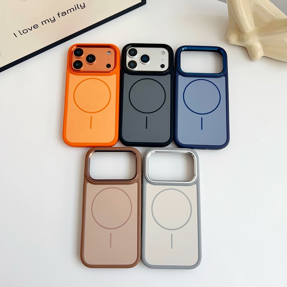 Custodia magnetica con telaio in metallo e pulsanti in metallo per Ip17 Pro Delux