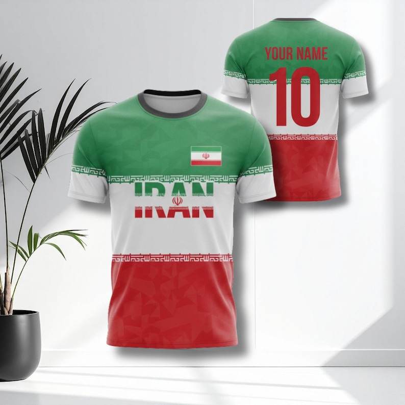 Set Maglia da Calcio Iran Personalizzabile con Nome e Numero, Rossa Bianca Verde, Maglia per Tifosi