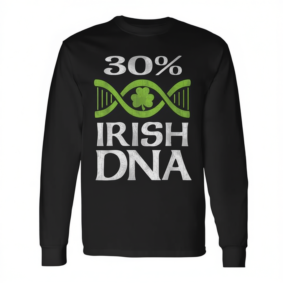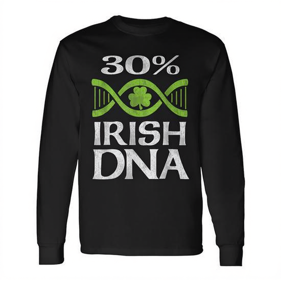 Maglietta a maniche lunghe Irish DNA 30 Percent St Patricks Day per adulti, unisex, girocollo, stampata serigraficamente