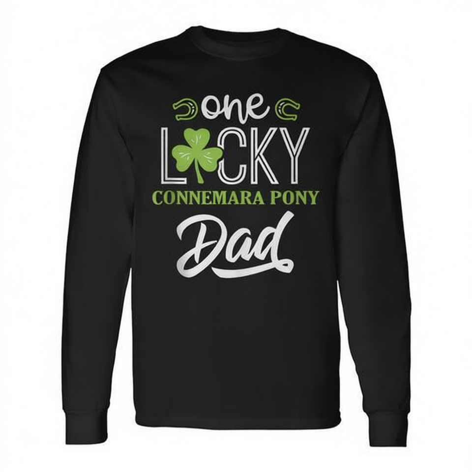 Maglietta a Maniche Lunghe Ispirata al Pony Irlandese per Uomo, Girocollo in Cotone, Vestibilità Regolare, Tema Equestre