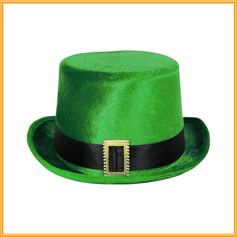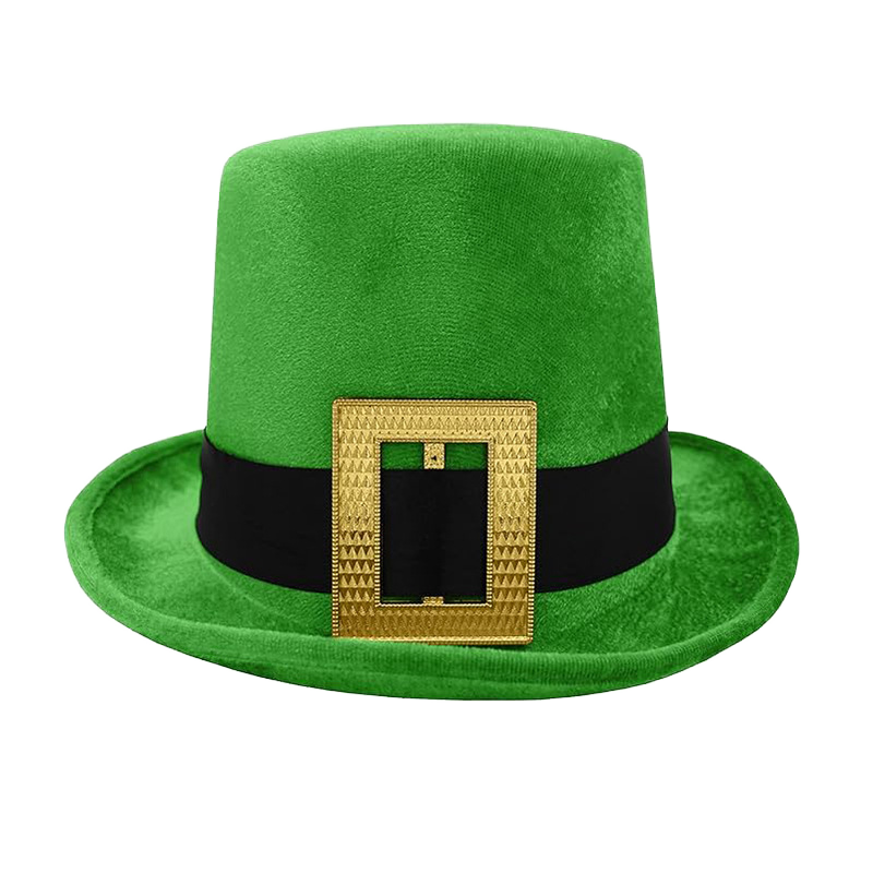 Accessori per Festa di San Patrizio Irlandese, Cappello Fedora Verde e Oro con Grande Fibbia, Taglia Adulto, Cappello a Bombetta per Carnevale