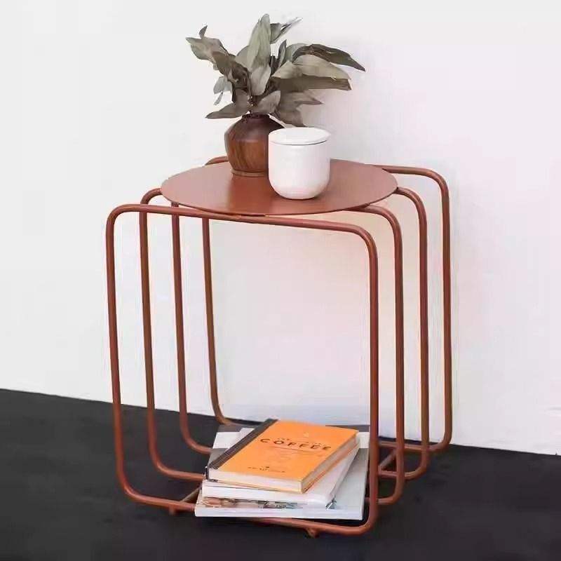 Tavolino in Ferro Battuto per Soggiorno Piccolo, Comodino con Armadietto per Casa, Tavolino d'Angolo in Metallo