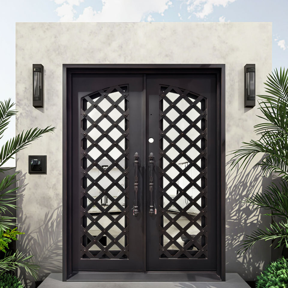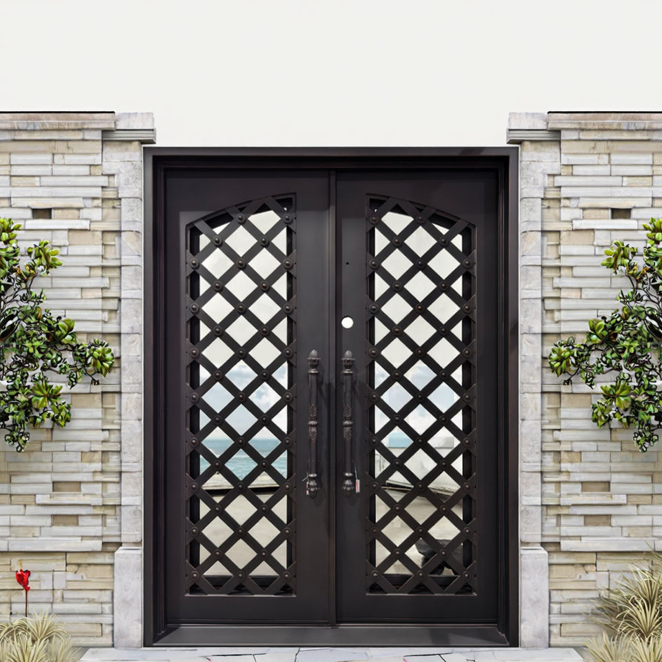 Porte a battente in ferro a doppio battente, cancello esterno in ferro battuto con doppie porte