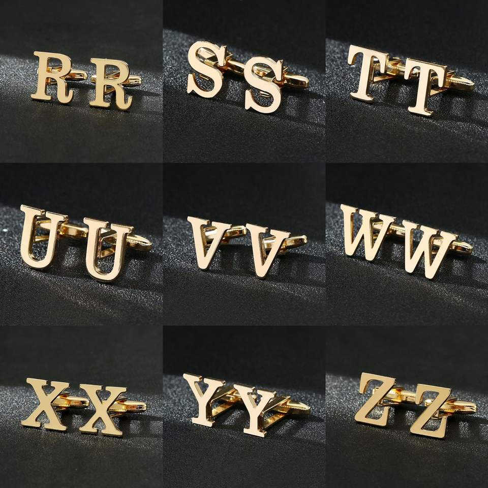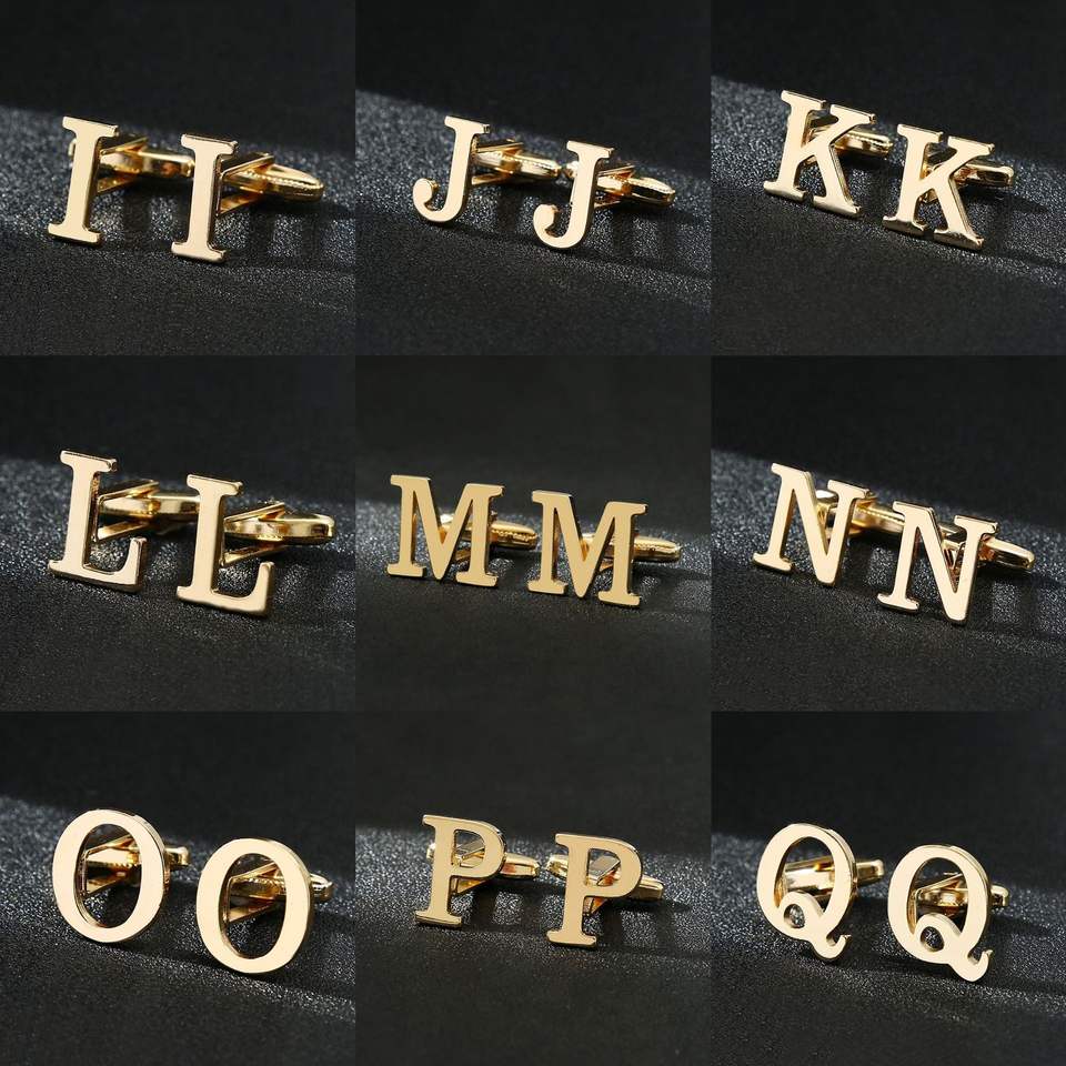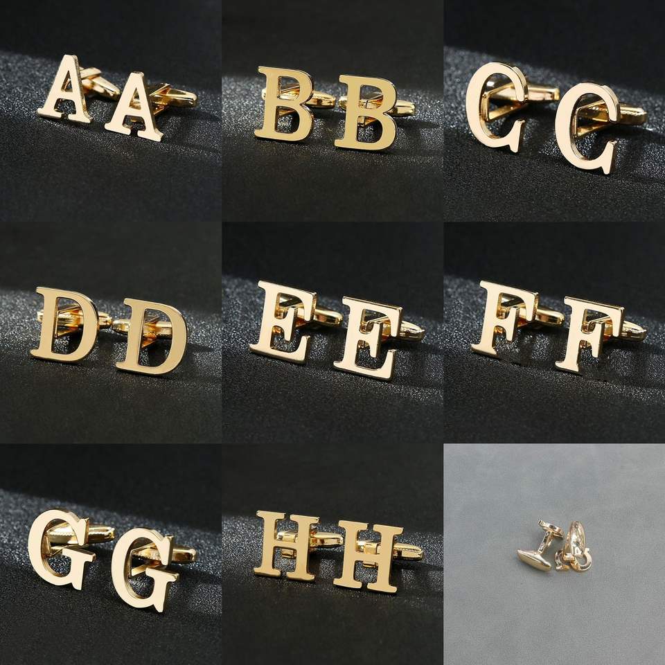 Gemelli da Uomo in Ferro Dorato con Lettere, Cristalli e Strass, Set da Matrimonio, Accessori per Camicia e Abito, Vendita all'Ingrosso dalla Fabbrica