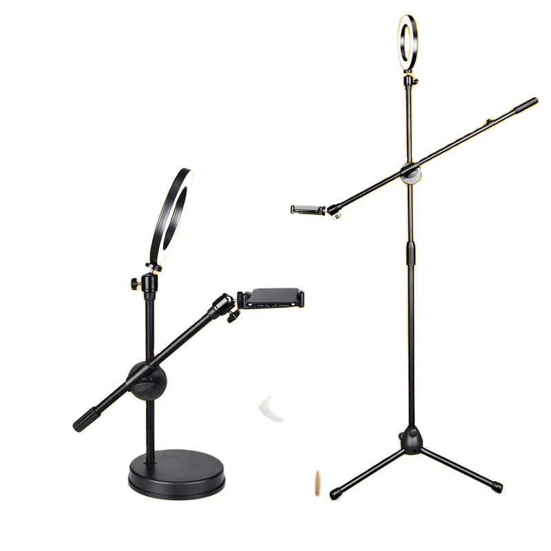 Supporto per cellulare in ferro, da tavolo, per riprese dall'alto, anti-vibrazione, con luce video e treppiede per selfie e foto