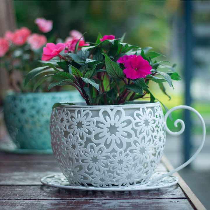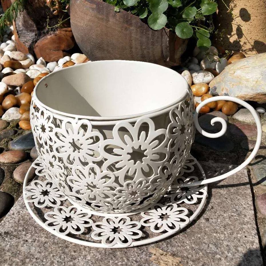 Ironwork Flower-shaped Hollowed-out Tea Cup and Basin Succulent Pot Decoration Coffee Cup-shaped Shooting Props