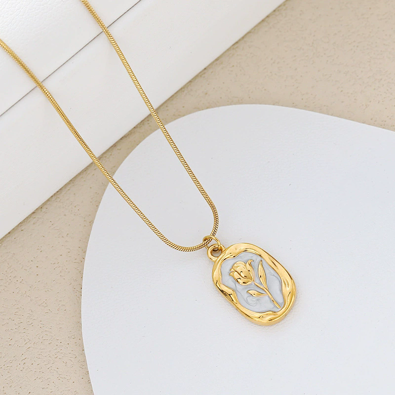 Irregular 18K Gold Stainless Steel Rose Tulip Drop Oil Enamel Badge Pendant Simple Flower Charm Necklace