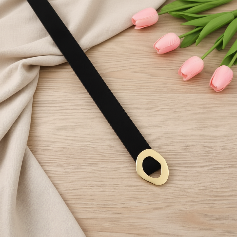Cintura da Donna in Camoscio con Fibbia Irregolare, Larghezza 7cm, Accessorio di Moda