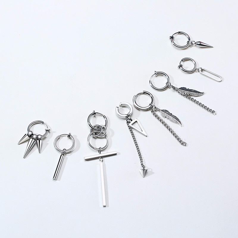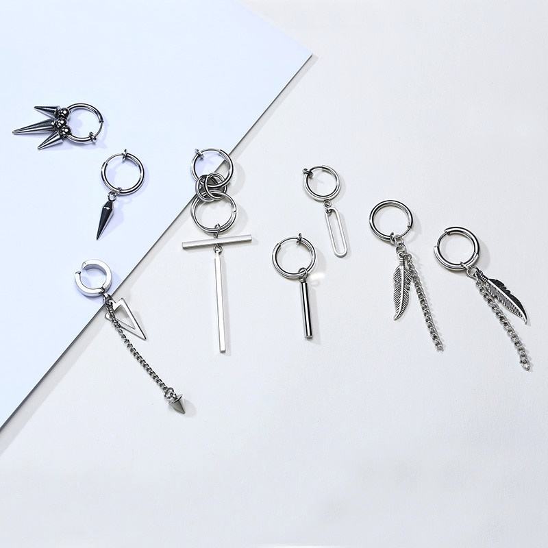 Orecchini a Cerchio Irregolari a Triangolo Lungo con Catena per Uomo, Gioielli Rock, i Più Cool Orecchini a Clip a Conchiglia