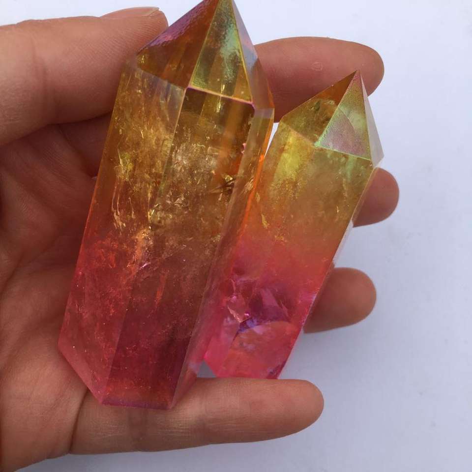 Punti di quarzo aura di cristallo naturale