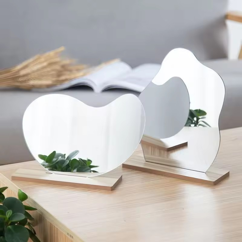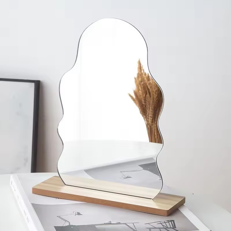 Specchio da trucco da tavolo irregolare, asimmetrico, infrangibile, specchio in acrilico su misura per camerino, camera da letto, bagno