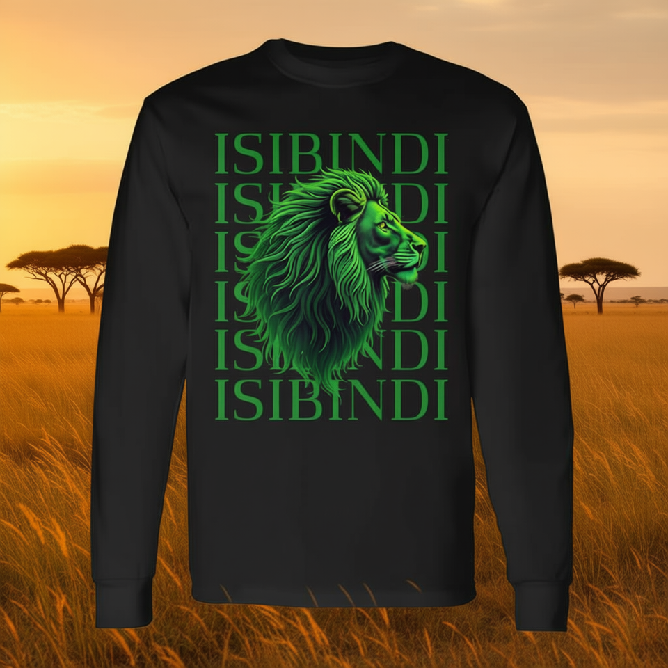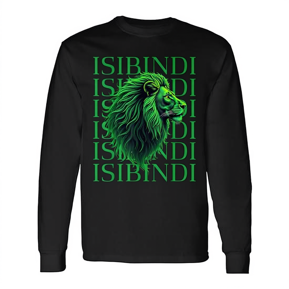 T-shirt a maniche lunghe Isibindi con design leone verde, coraggio e potenziamento di sé