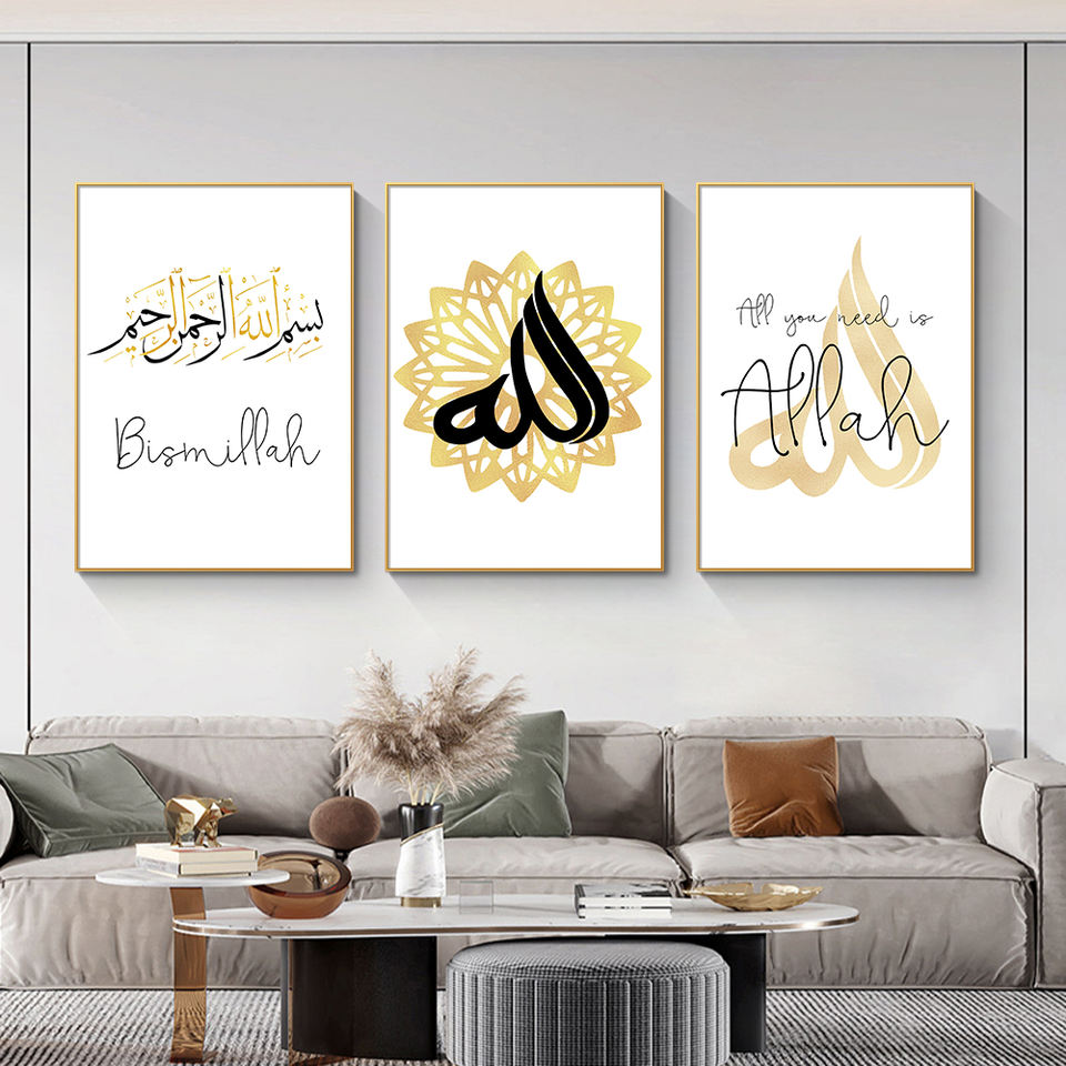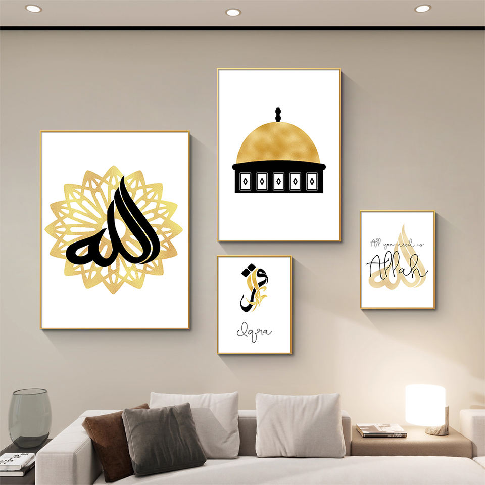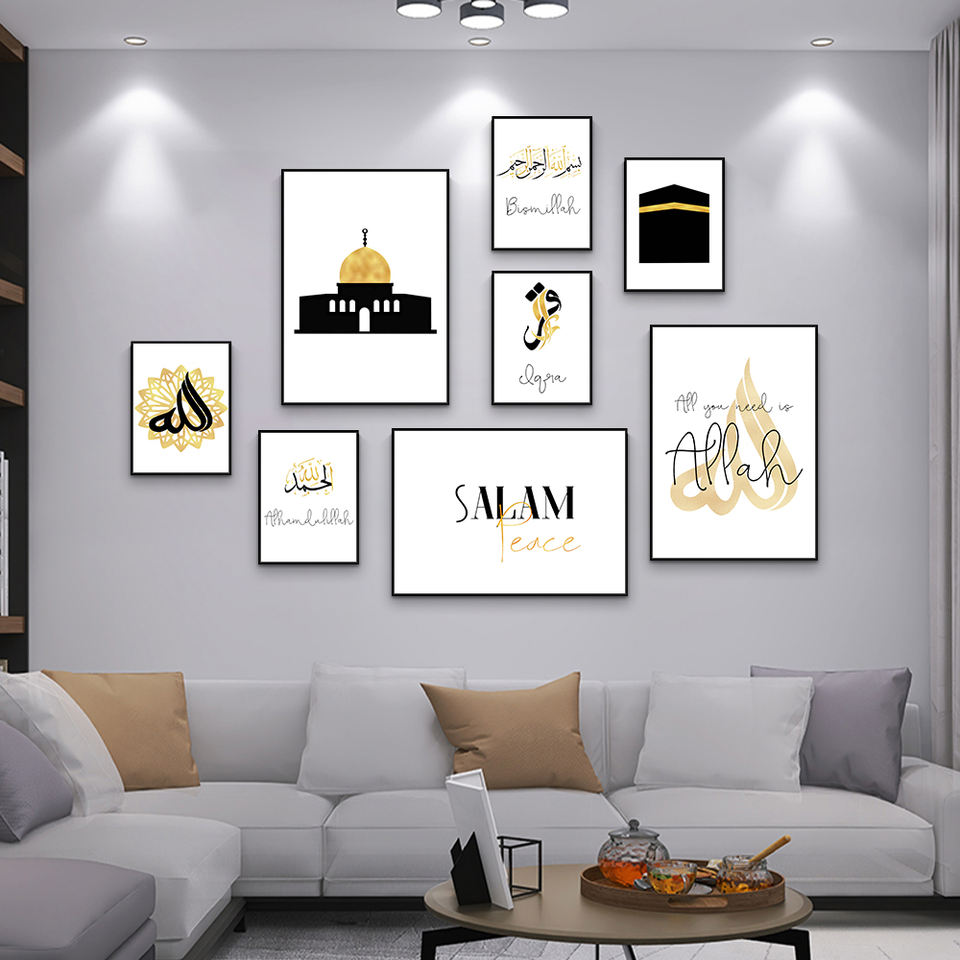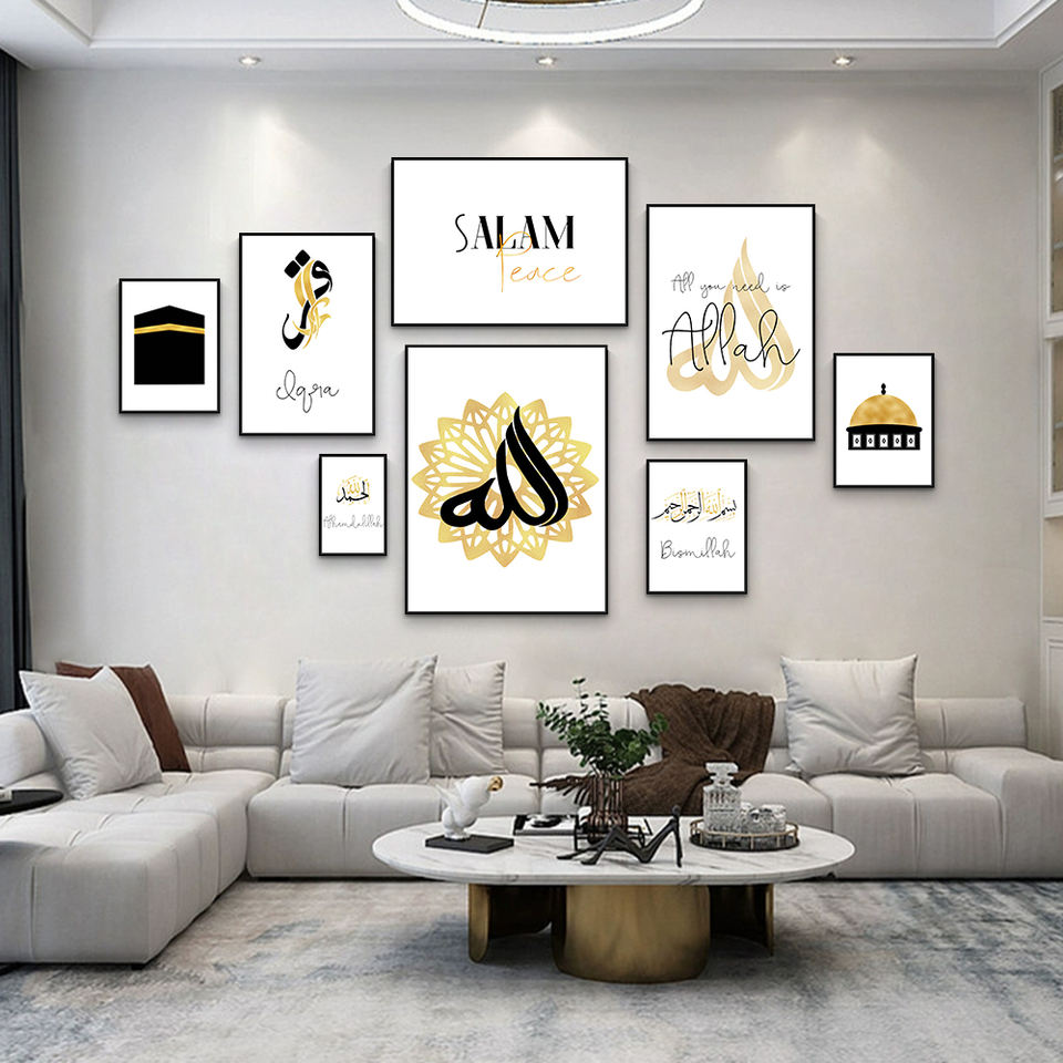 Islamic Arabic Calligraphy Canvas Wall Art 8 Panels Set Middle Eastern Home Decor for Living Room Bedroom Modern Wall Decor