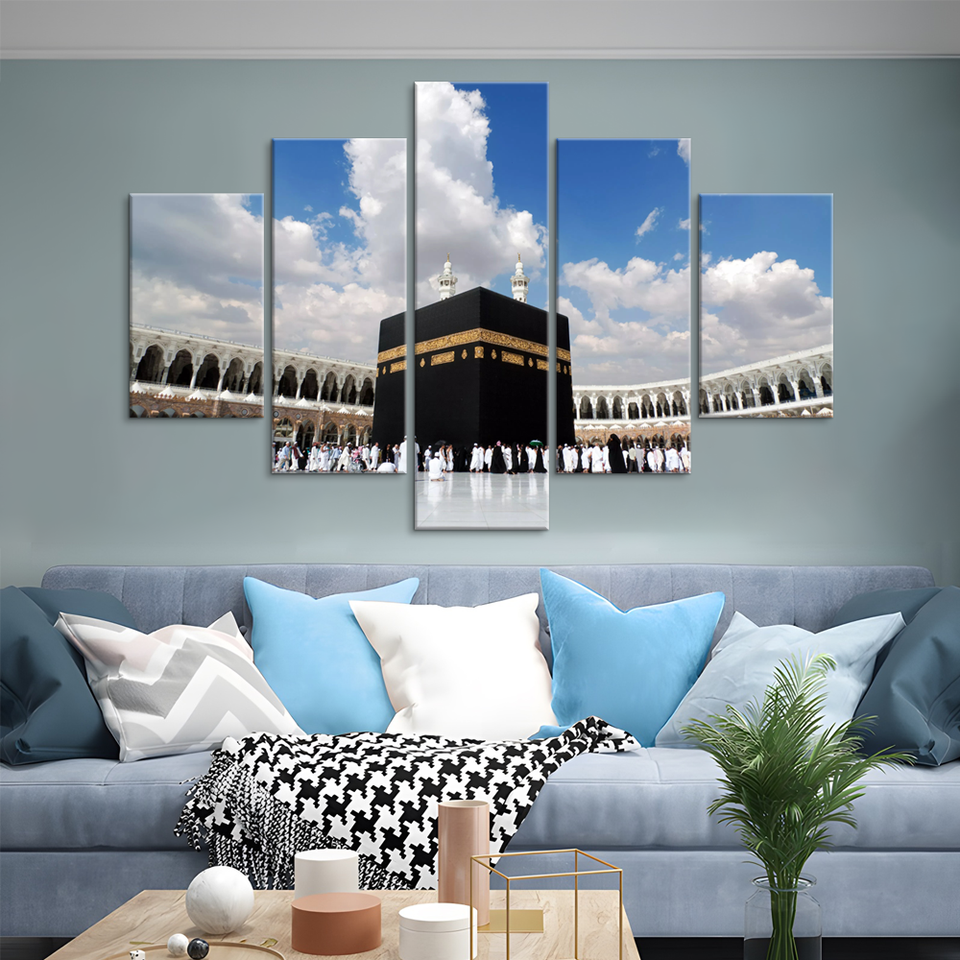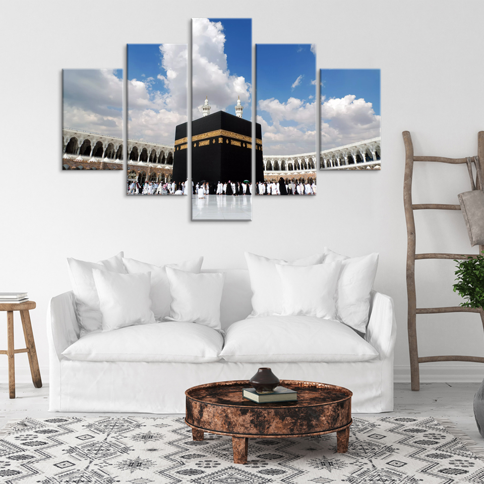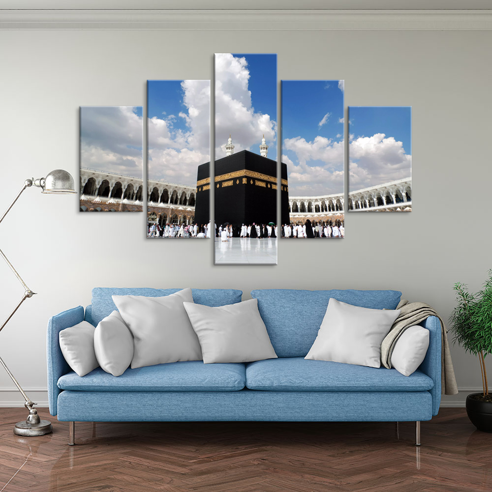 Islamic Art Wall Decor Pilgrimage Site Mecca, Muslim Architectural Art Canvas Poster Modern Oil Prints