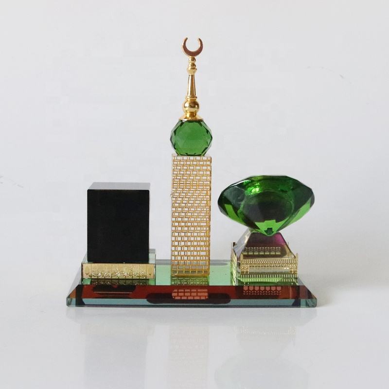 Nome del prodotto:Di cristallo Makkah Clock Tower Con Kaaba Modello Con Diamante Verde Orologio