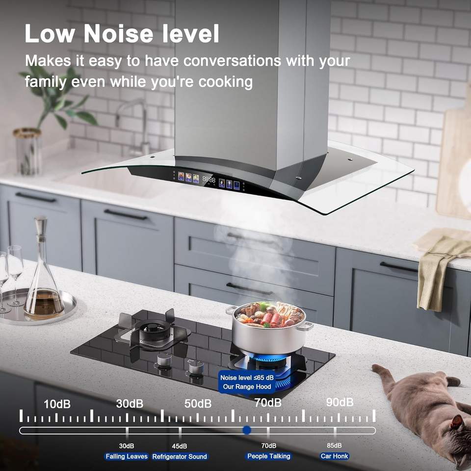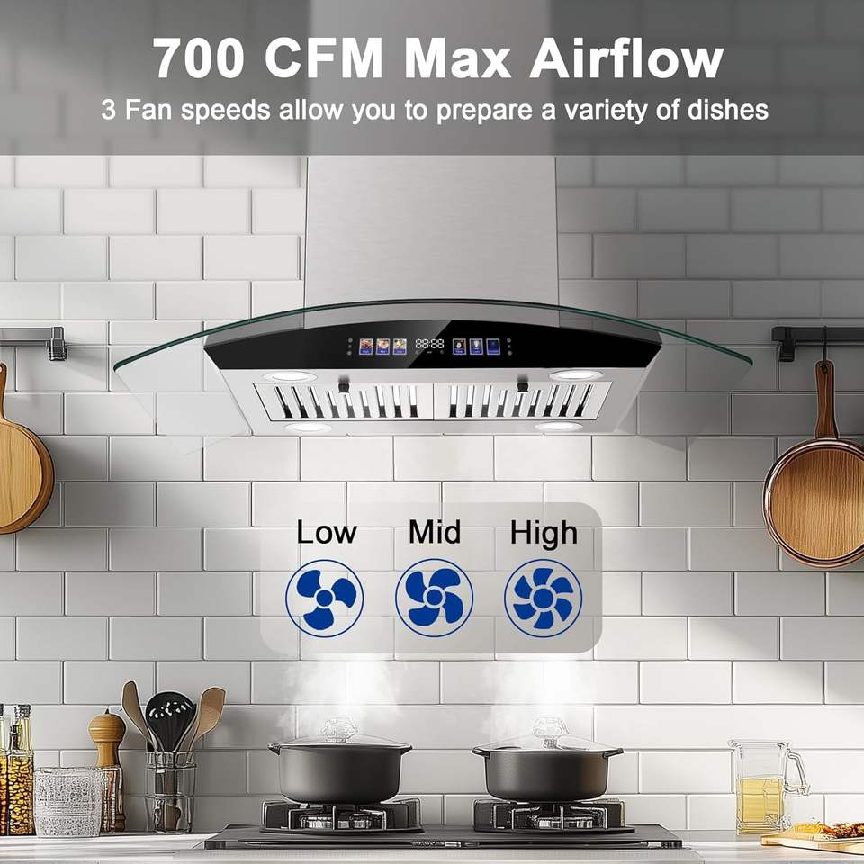 Cappa aspirante da soffitto Island da 30 pollici, 700 CFM, in vetro temperato, con controllo touch a sensore di movimento
