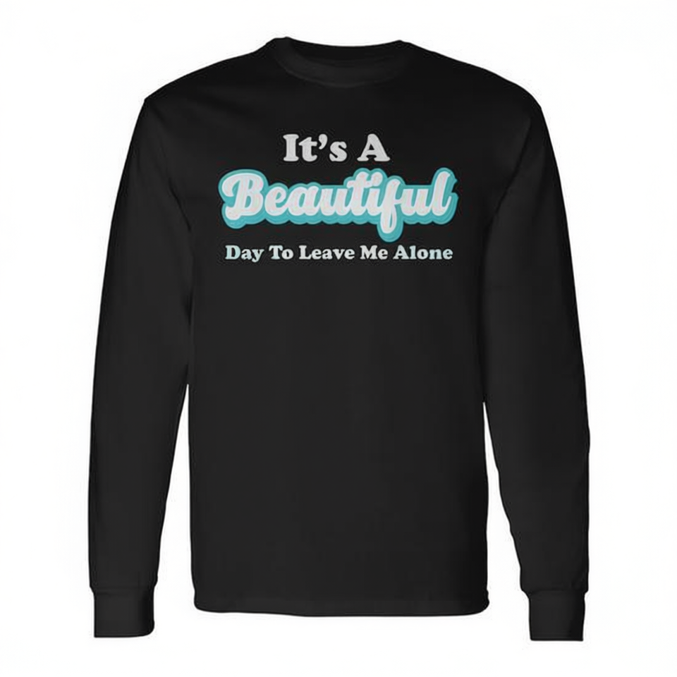 È una bella giornata per lasciarmi in pace T-shirt a maniche lunghe unisex con scollo rotondo per adulti con stampa serigrafica