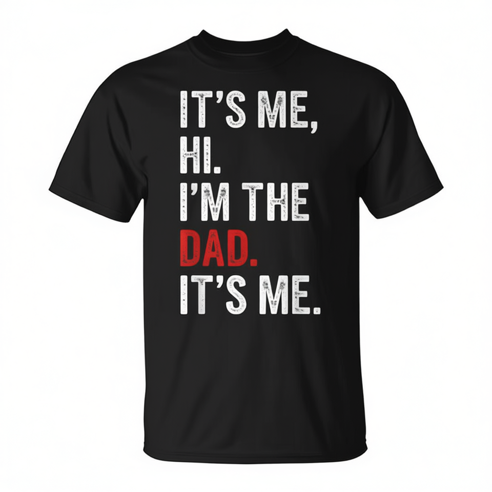 T-shirt da uomo in cotone nero girocollo a maniche corte - Promozionale - 'It's Me Hi I'm The Dad It's Me'