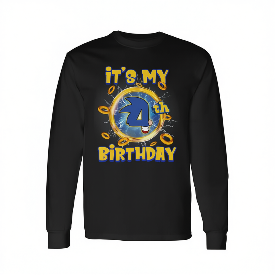 T-shirt a maniche lunghe per la festa di compleanno del mio quarto compleanno, coordinata con la famiglia