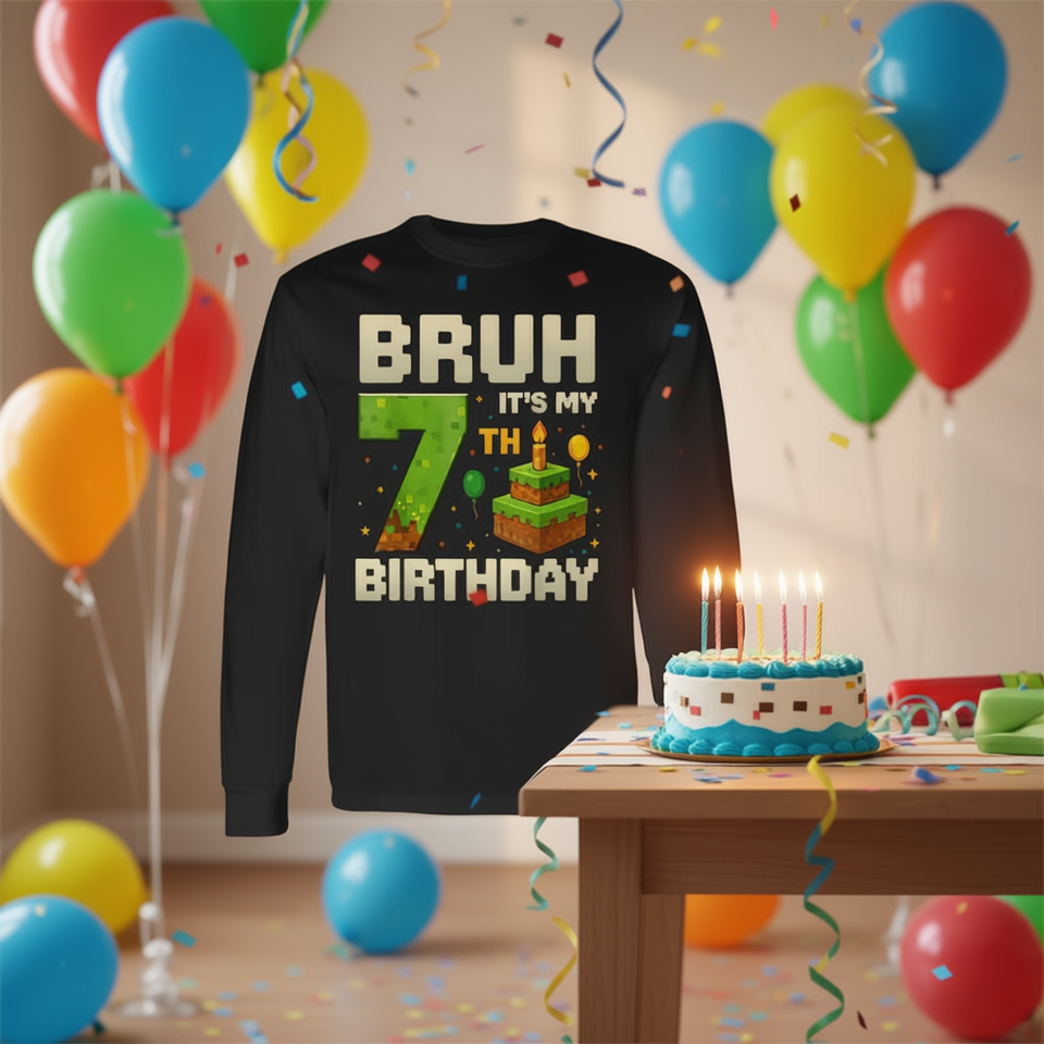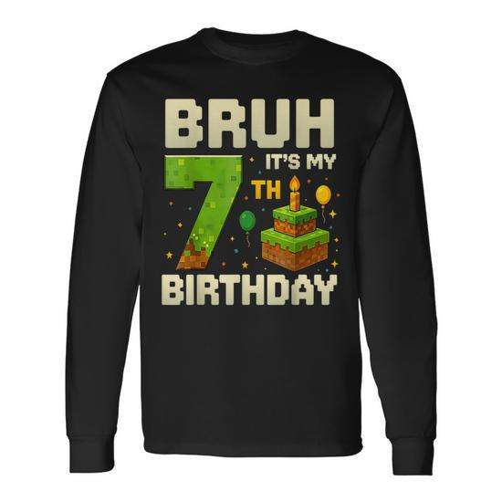 Maglietta a Maniche Lunghe con Stampa Pixel 'È il Mio 7° Compleanno' per Bambini di 7 Anni, Abbigliamento Promozionale Personalizzabile