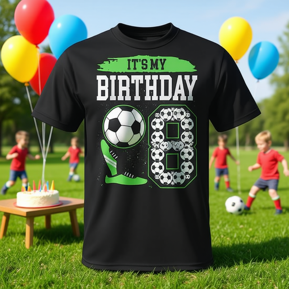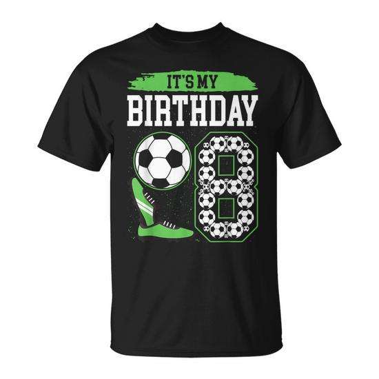 Maglietta da calcio "È il mio compleanno" per il 8° compleanno, design verde a tema calcio