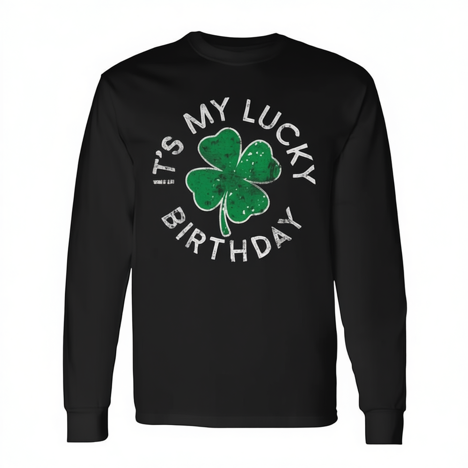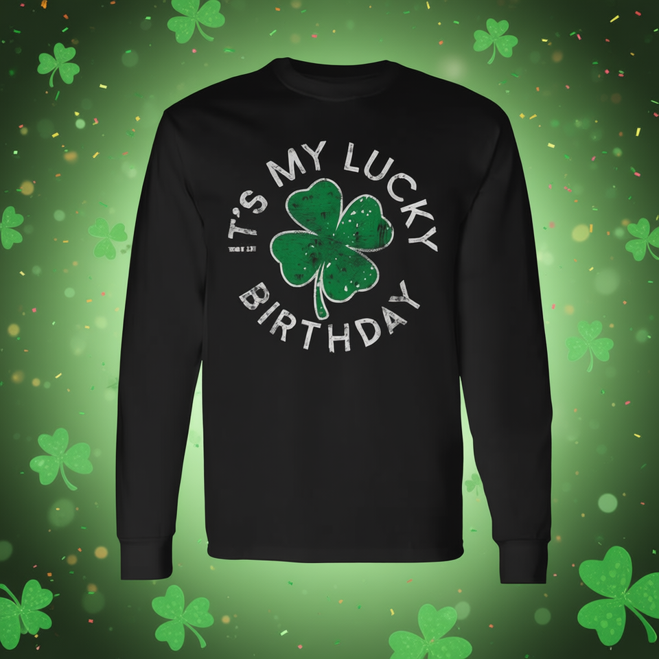 T-shirt a maniche lunghe effetto invecchiato It's My Lucky Birthday St Patrick's Day